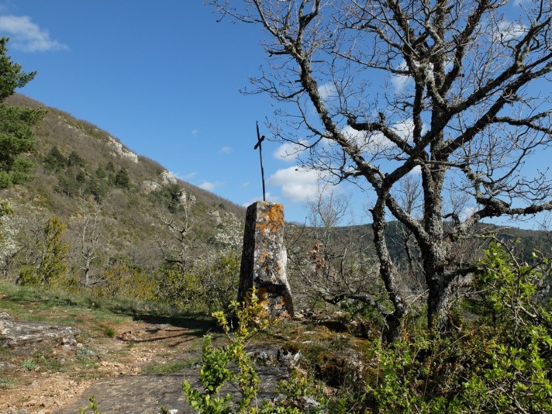 Au départ de la Jonte Jouxtant une très belle et ancienne calade, au croisement de 4 sentiers, dont l'un finit 2 kilomètres plus loin à Hyelsas, la date inscrite sur cette croix représente tout un symbole.