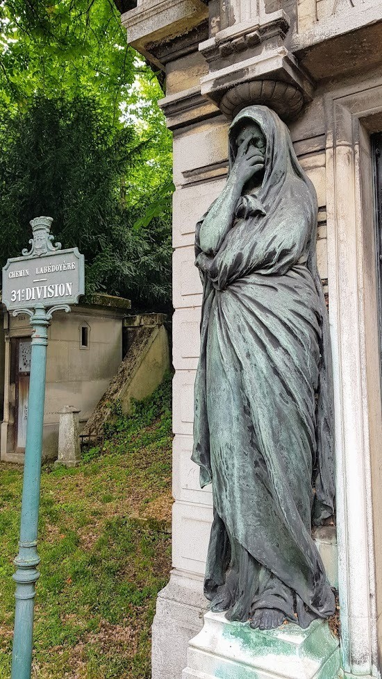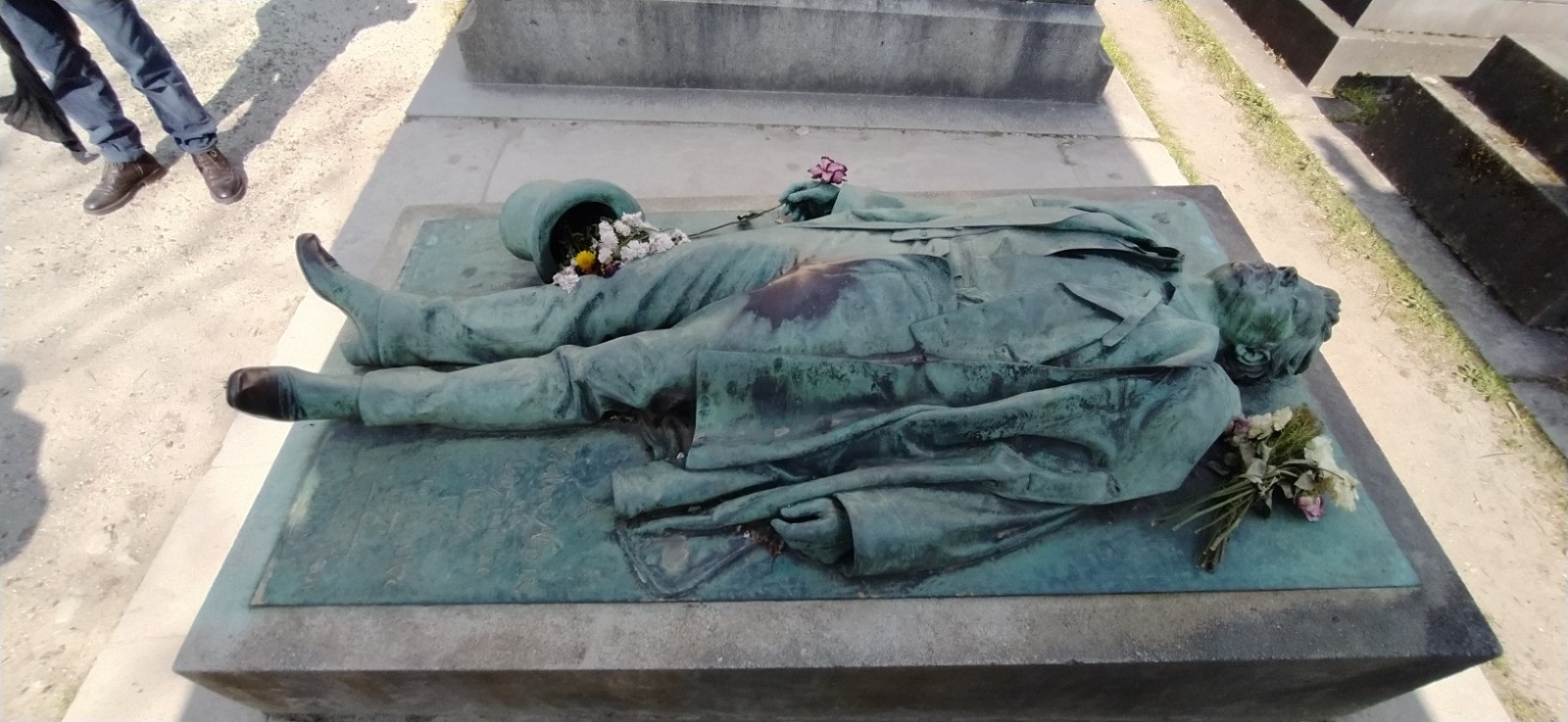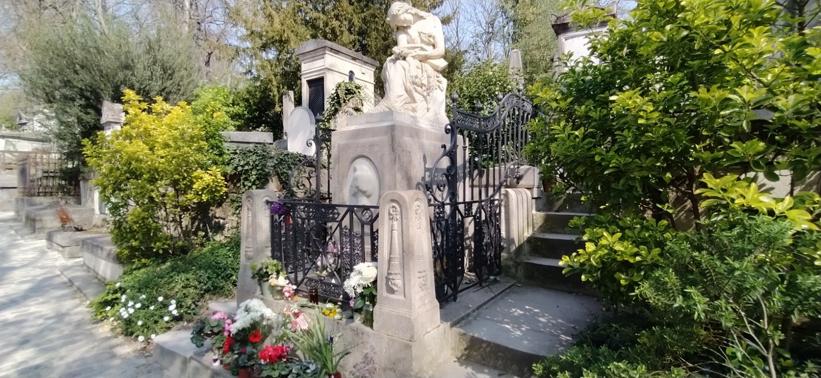 Balade dans le père Lachaise avec tombes de Proust, Balzac, Delacroix, Marie Laforêt, Annie Girardot, Michel Delpech, Alan Kardec, Gaspard Ulliel, Grapelli, Laurent Fignon, Achille Zavatta, Michel Legrand, Signoret/Montand, Victor Lenoir, Tignous, Henri Salvador, Edith Piaf, Sylvie Jolie, Bécaud, Toscan Duplantier, Marie Trintignant, Sophie Daumier, Franck Alamo, Violaine Vanoyeke, Gericaux, Higelin, Bashung, Morrison, Félix Faure, Chabrol, Desproges, Chopin, Petrucciani , famille Darty