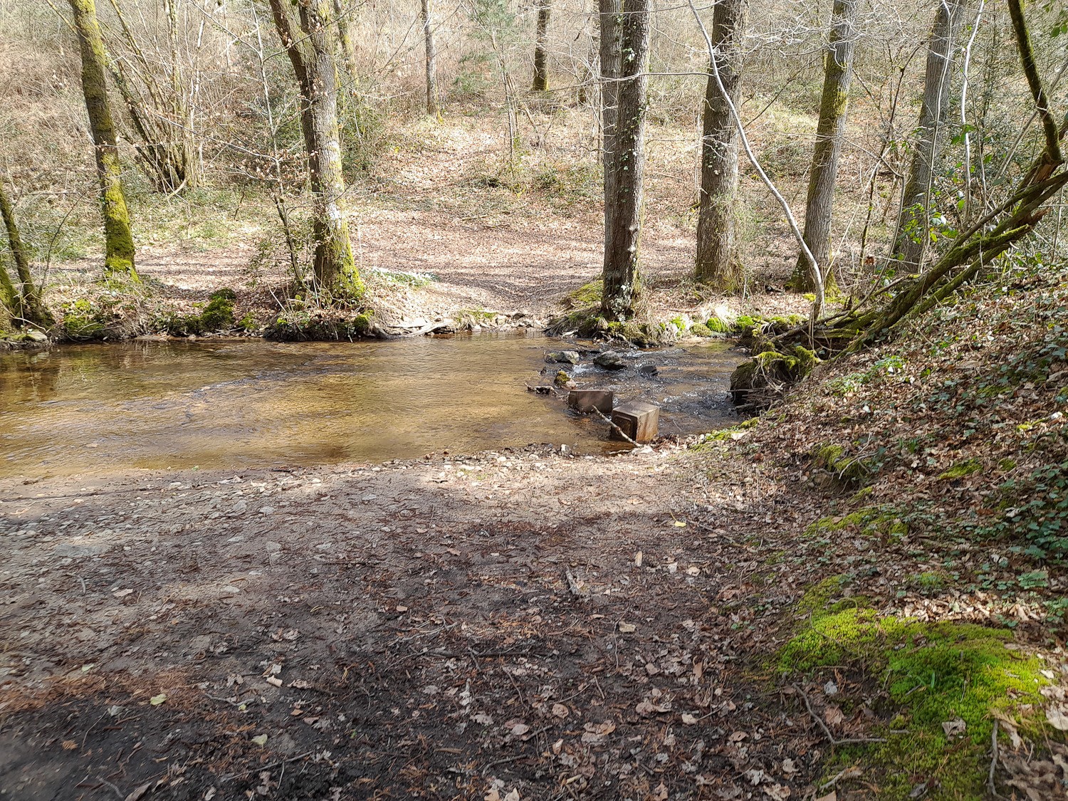 Un bisou en passant, la traversée du ruisseau sur les pierres et case départ.