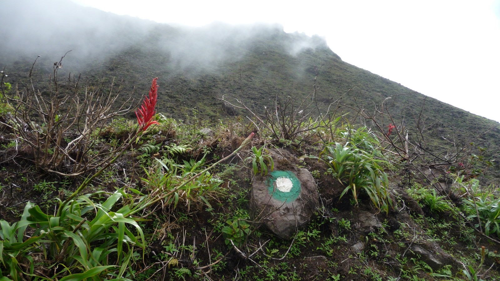 Longer l'arête direction Sud Est et redescendre légèrement jusqu'au 2ème refuge. Suivre le sentier qui longe la Caldeira côté Nord Ouest jusqu'à l'intersection avec le chemin qui descend vers le Prêcheur. Prendre à gauche le Chemin très raide qui arrive au 3ème refuge. De là le sommet est à 10mn.