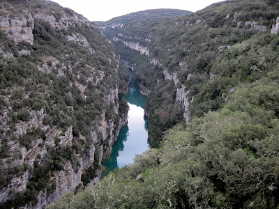 Basses Gorges où coule le Verdon, en aval du barrage de Sainte Croix. Parce qu'elles sont très encaissées, le fond n'est praticable que par la voie navigable : le chemin des basses gorges est un sentier de crête. Moins connues est moins fréquentées que la partie en amont du lac de Sainte Croix, les