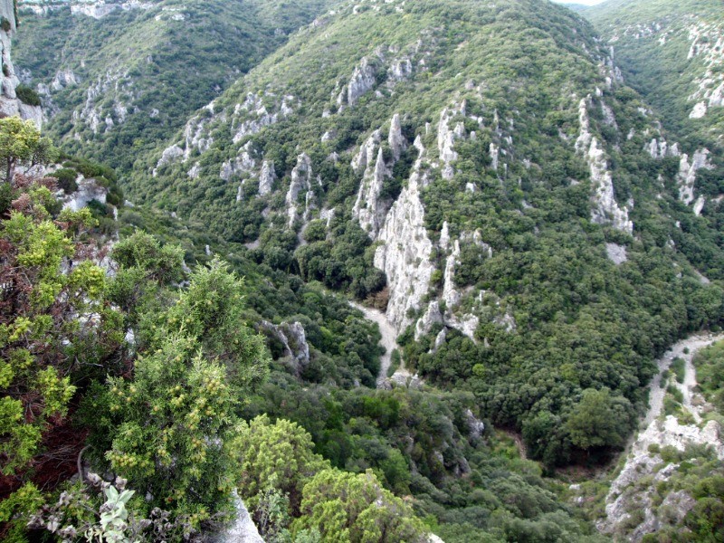 Qu'il est joli, le petit chemin qui descend au moulin de Gentil, près des grottes de La Coquille!... La remontée nous fait encore mieux découvrir les beautés du relief karstique. Une randonnée à faire.