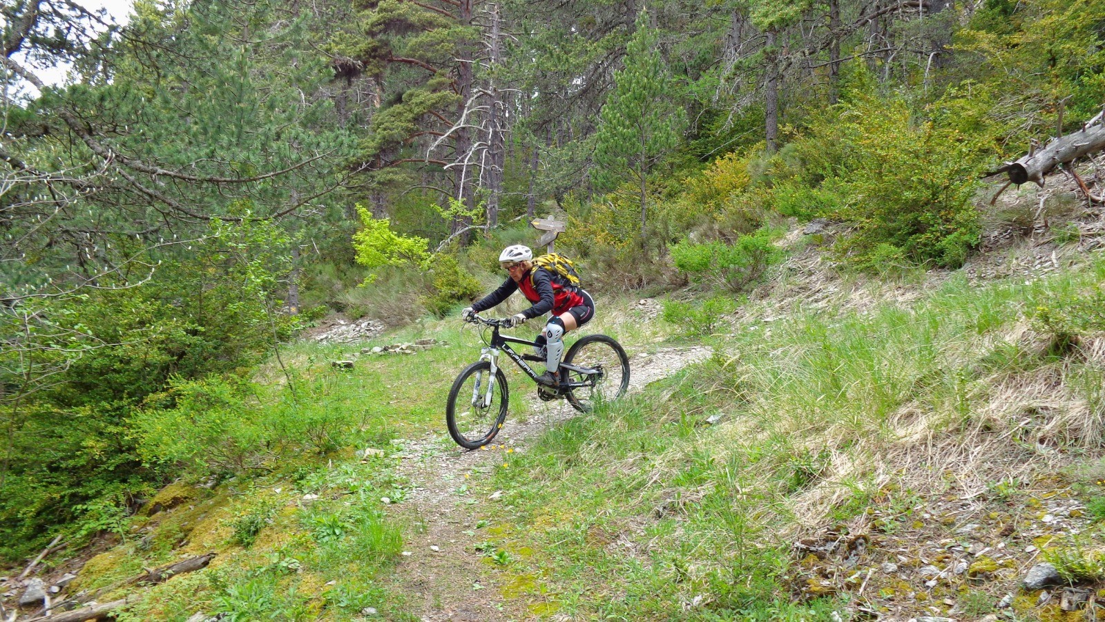 Montée efficace sur piste au milieu des bois, du single en corniche avec des vues magnifiques, des virolos et des épingles, rien à jeter dans cette sortie.