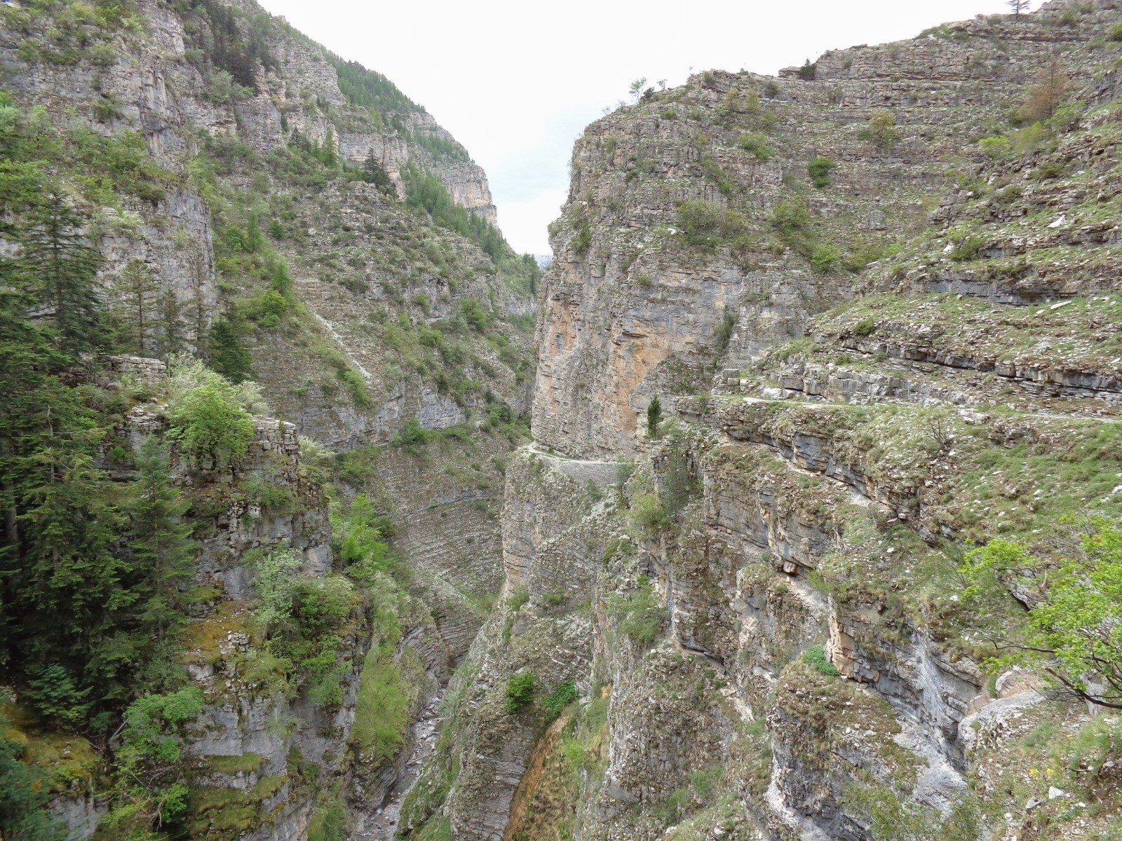 Belle descente après la Cabane de Chabanal avec des épingles plutôt difficiles, nous voilà enfin dans les magnifiques Gorges de Saint Pierre, attention, chute interdite, la moindre erreur serait fatale.