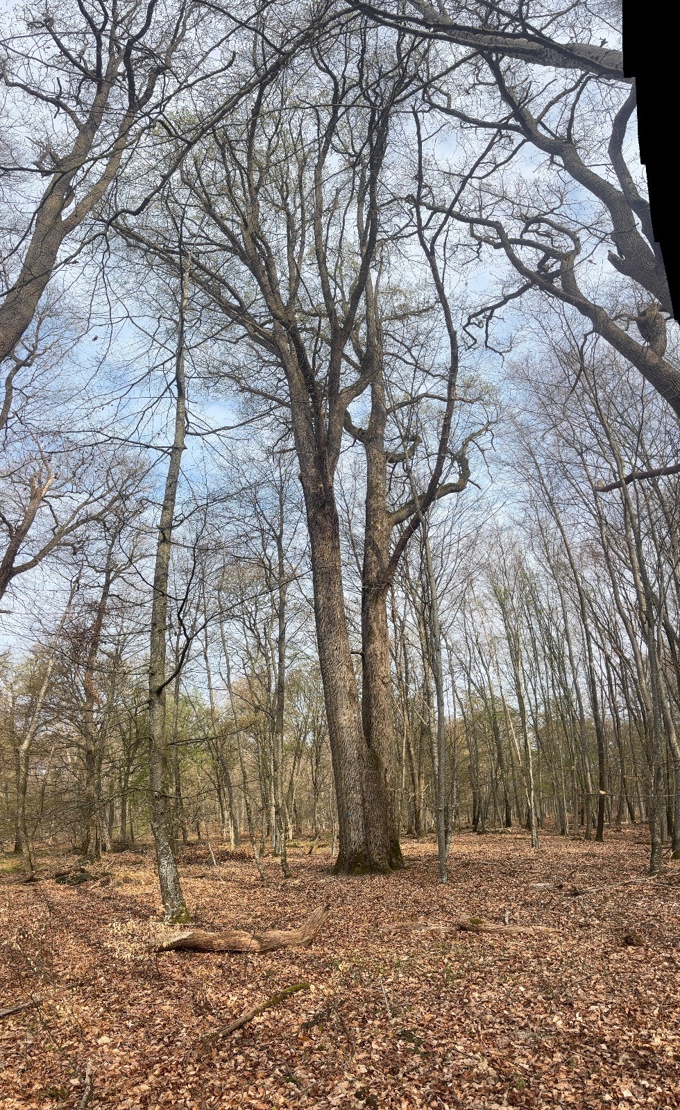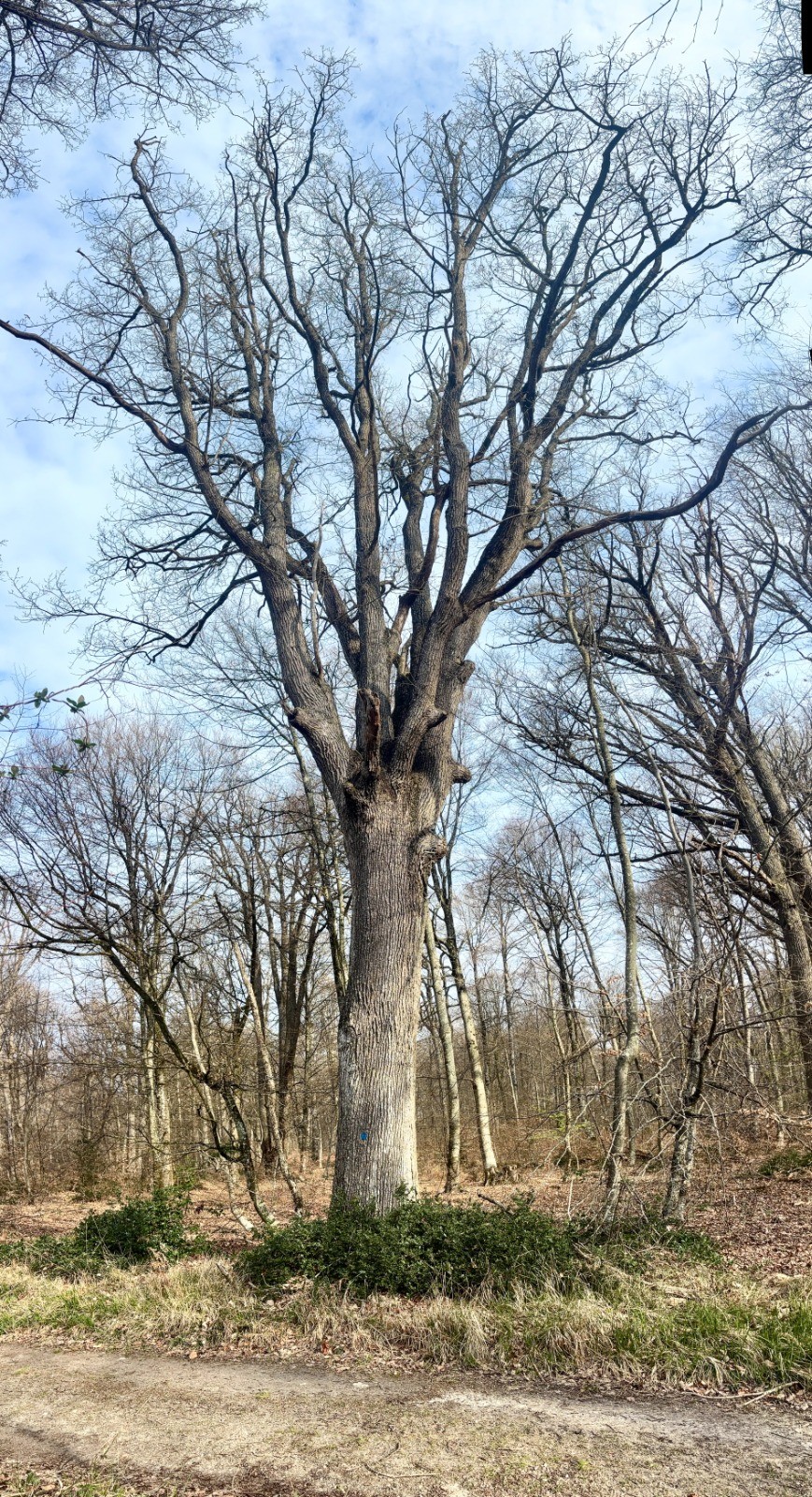 à droite l'ONF a planté un chêne des marais (Q) et en face sur la gauche se dresse un chêne Cécile R 2.79 circ.