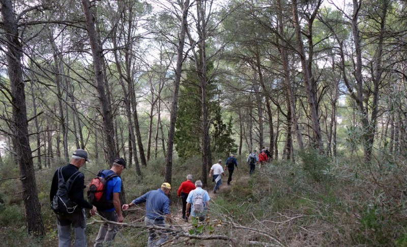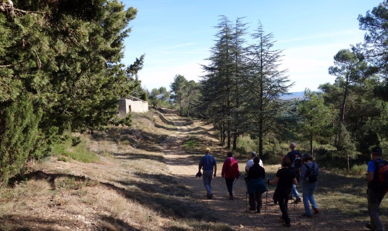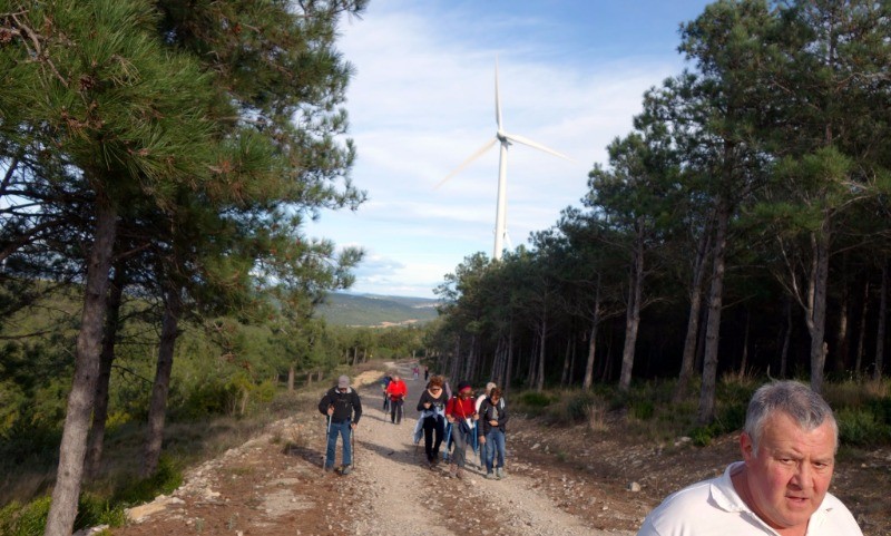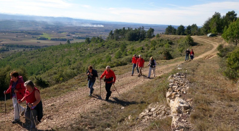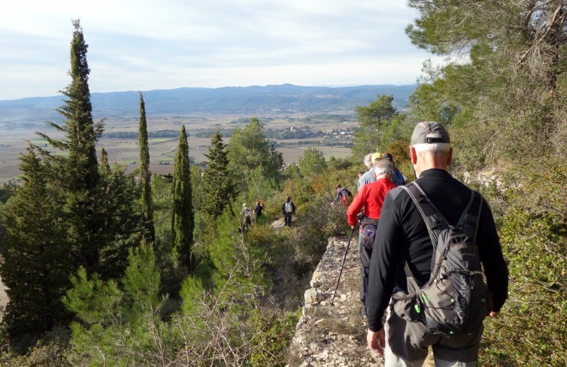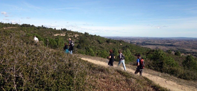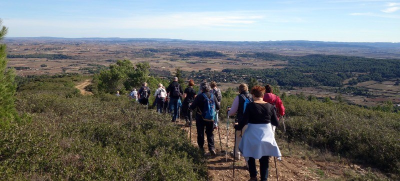 Il est bon, quand il fait beau, de gravir les sentiers caillouteux de la colline d'Oupia... ça repose le corps et l'esprit de marcher sur la Serre au petit bonheur ... partir pour partir, rêver, oublier. Nous pesons sur les batons de tout notre poids, de tout notre coeur. Nous doutons des vignes, nous voyons très bien, n'y pensons pas, chantons en coeur la chanson qui me reste : " Sur la serre d'Oupia les Sans-eymes sont là ..."