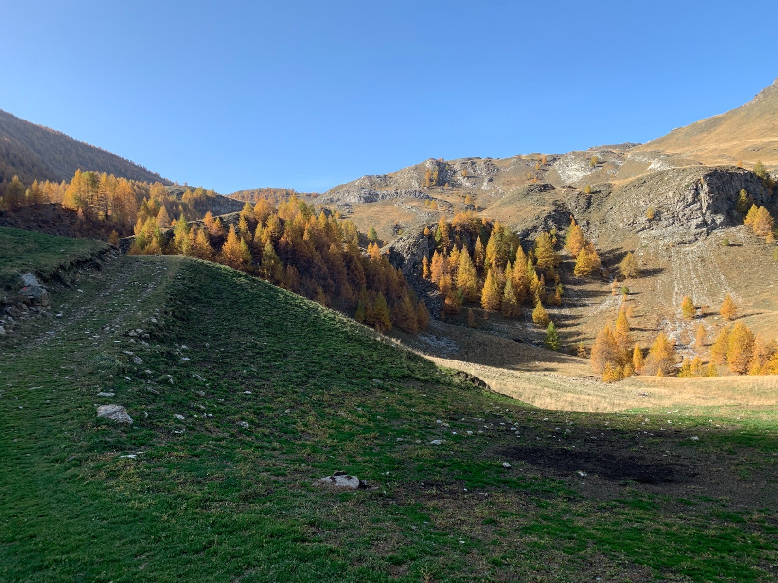 La montée jusqu'au Col de la Fourche 2303m se fait en visant la crète et le single à droite à peine perceptible. La montée jusqu'au col est plus hardu à cause de l'absence de sentier et la forte pente.