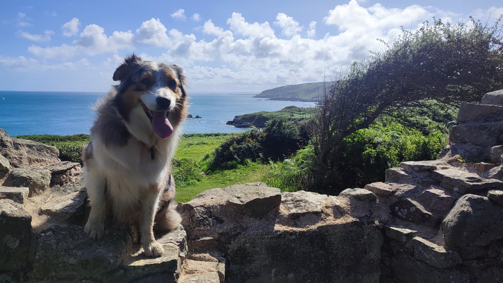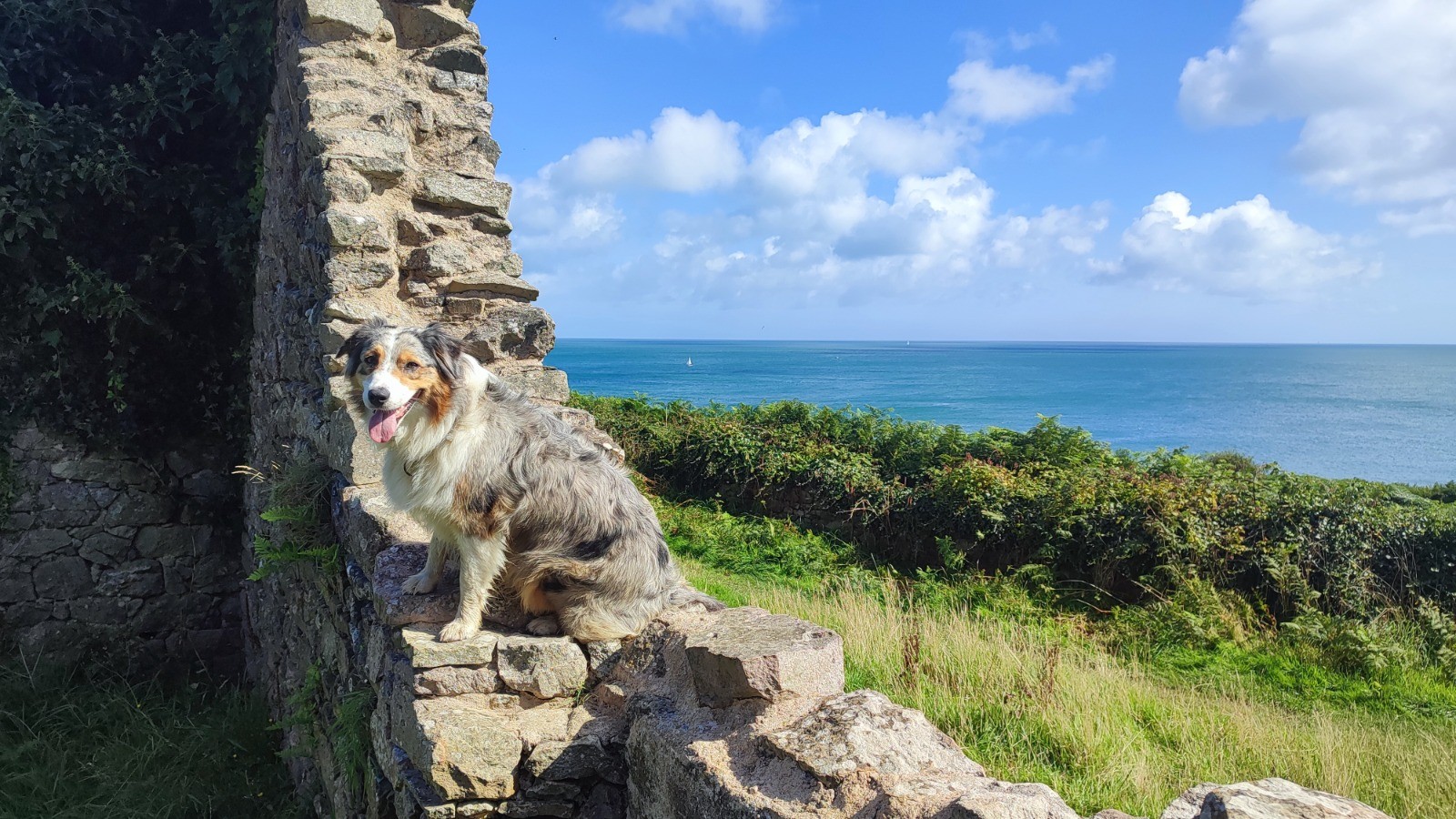 Avec Anne-Marie, Savane et moi sur des chemins bien connus ... et d'autres nouveaux (du bord de mer à Digulleville : belle petite chasse en montée). Temps idéal pour se balader en bord de mer.
