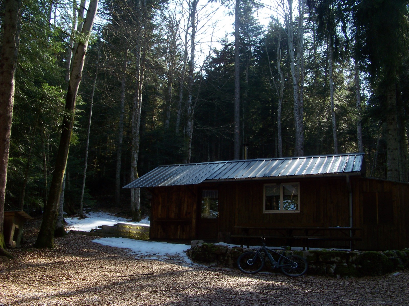 On passe à la discrète cabane/refuge de la source de la Rave, un des rare point d'eau permanent sur le parcours après une descente un peu technique.