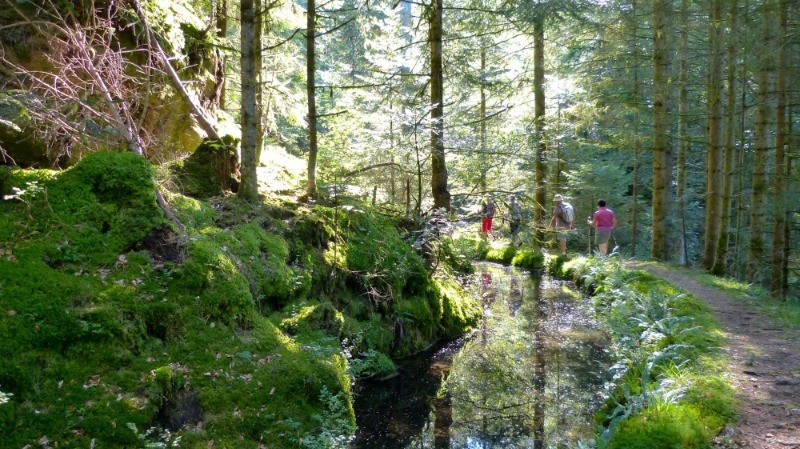 Scierie de Machet, route forestière de Mauvais, les Hauts de Chaumont, croix Erhart, ruines de la scierie du Marquis, canal d'alimentation de la scierie hydraulique de Machet