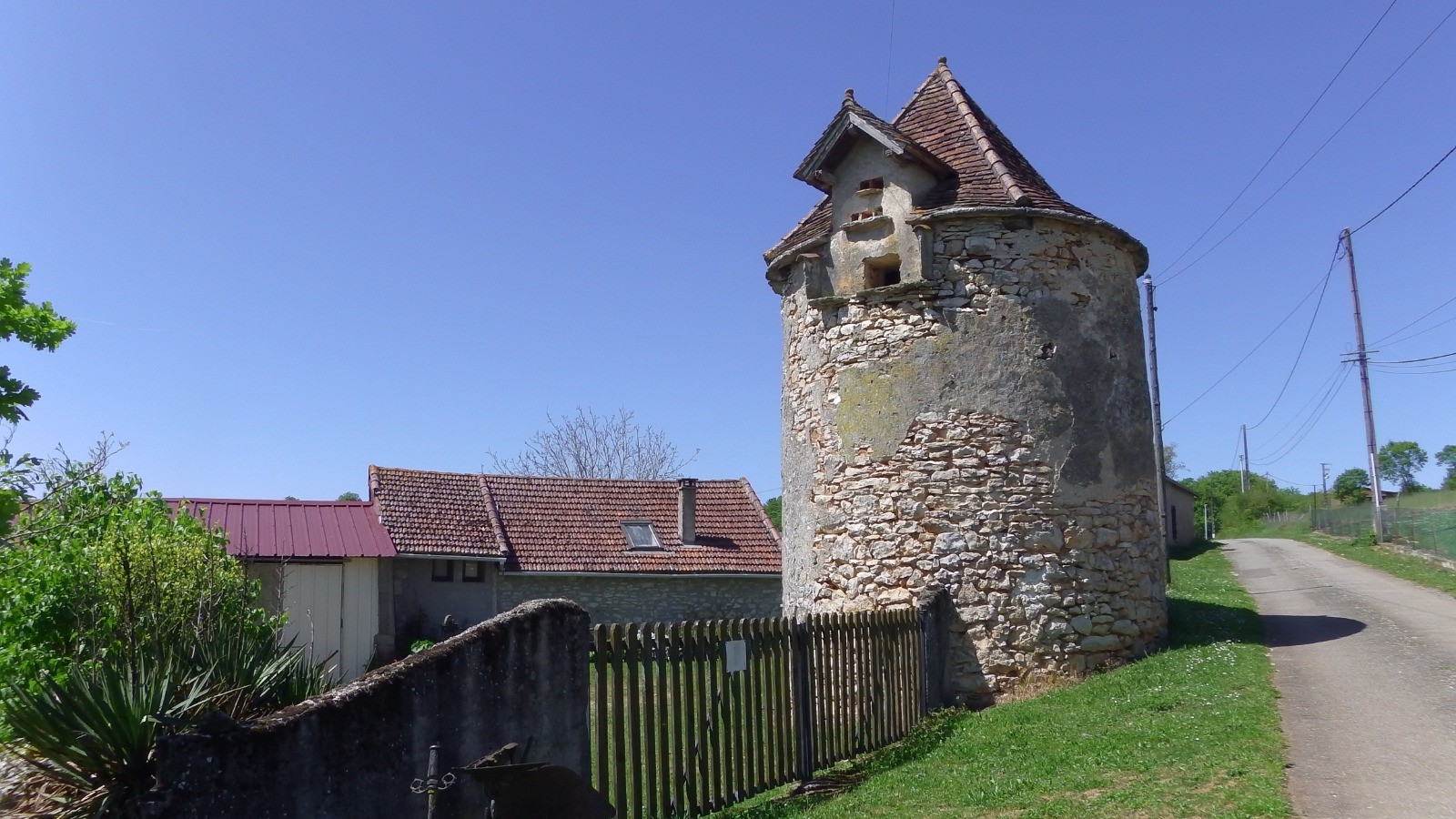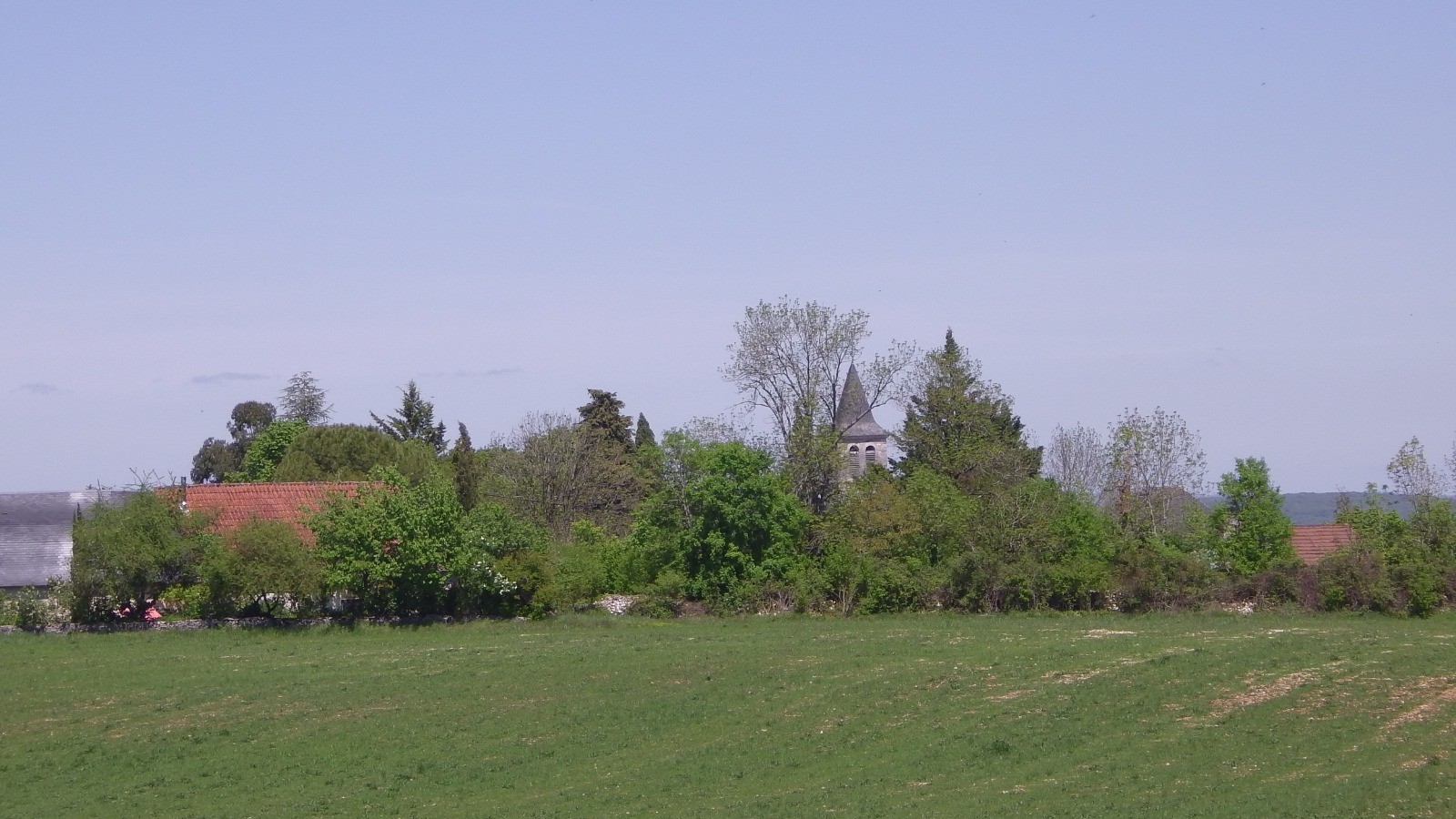 Paysage très vallonné, deux dolmens à voir mais pas trouvé le 1er, trop masqué par la végétation, le second, un peu à l'écart de la trace est signalé par un petit cairn, mais il a été ouvert. On y verra un beau pigeonnier et de beaux paysages.