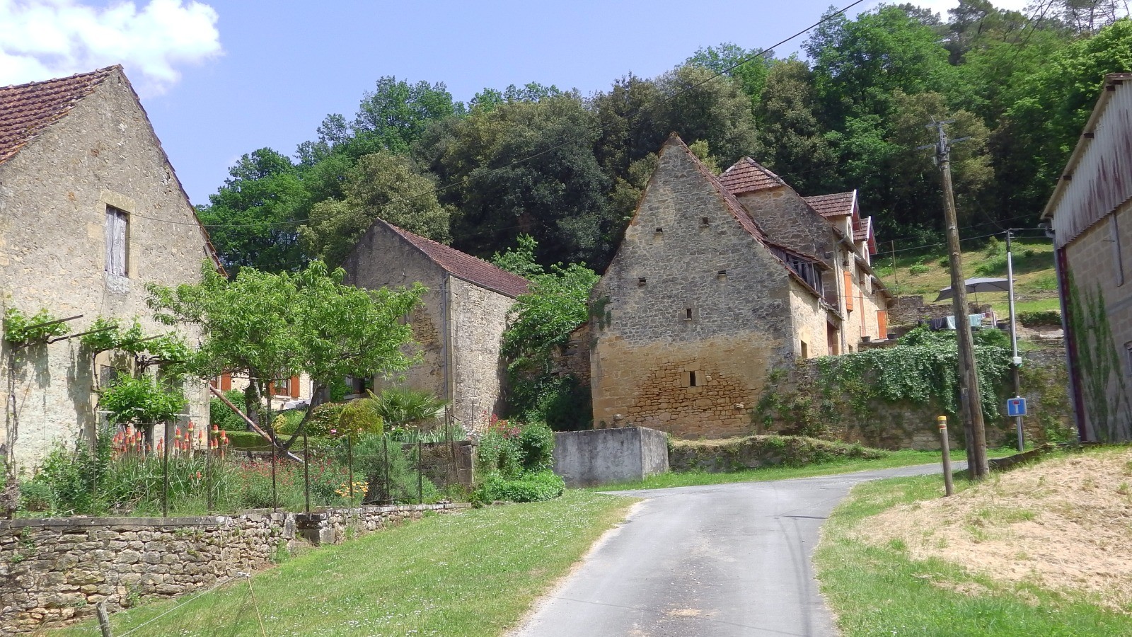 Départ: depuis la D 703, arrivé au croisement pour aller à Calviac, partir vers la Dordogne, un parking avec 2 tables se trouve en contre-bas de la grande route.