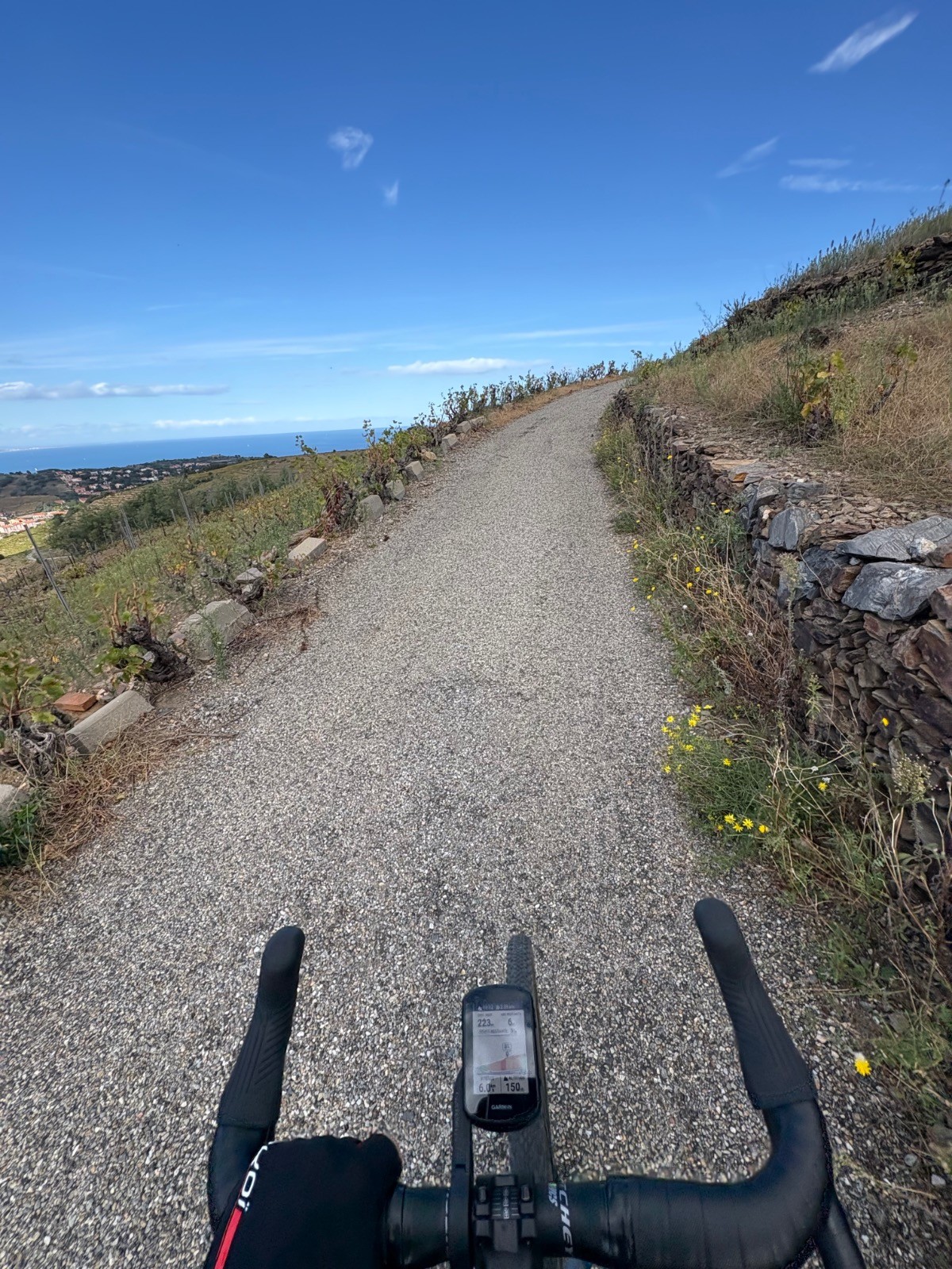 Une trace hybride avec 78 % de route et 22 % de pistes — un gravel facile et que du plaisir du début à la fin, mais un col de Banyuls toujours aussi raide avec ses passages à 15%.