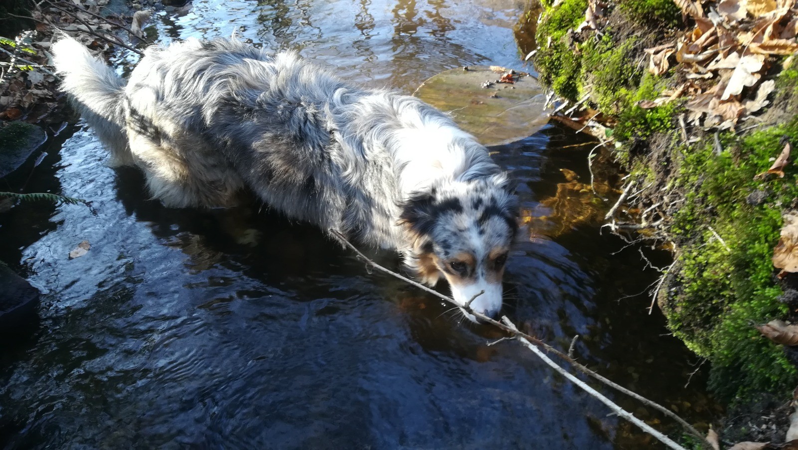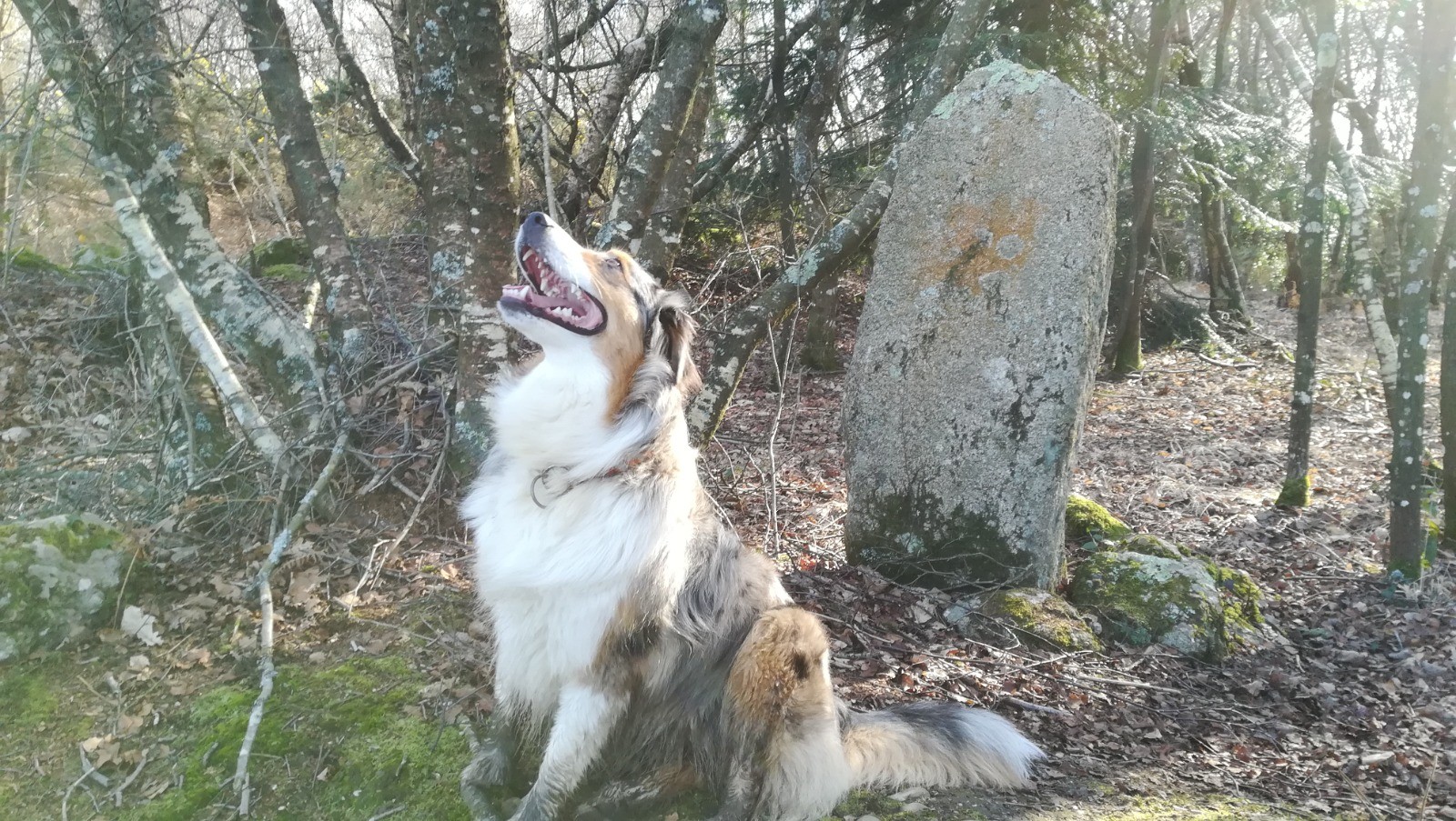 Bref : temps superbe, bonne distance, Savane a réussi un bel exploit dès le début du parcours : km 0.7 (la photo est mal positionnée), un engin de travaux / jardinage bouchait le chemin. J'ai réussi à l'escalader pour passer et j'ai appelé Savane ! Elle était restée derrière et devait passer en dessous. Le moteur tournait et, malgré cela, elle m'a rejoint ... Une vraie louve, ma chienne (^_^) !!