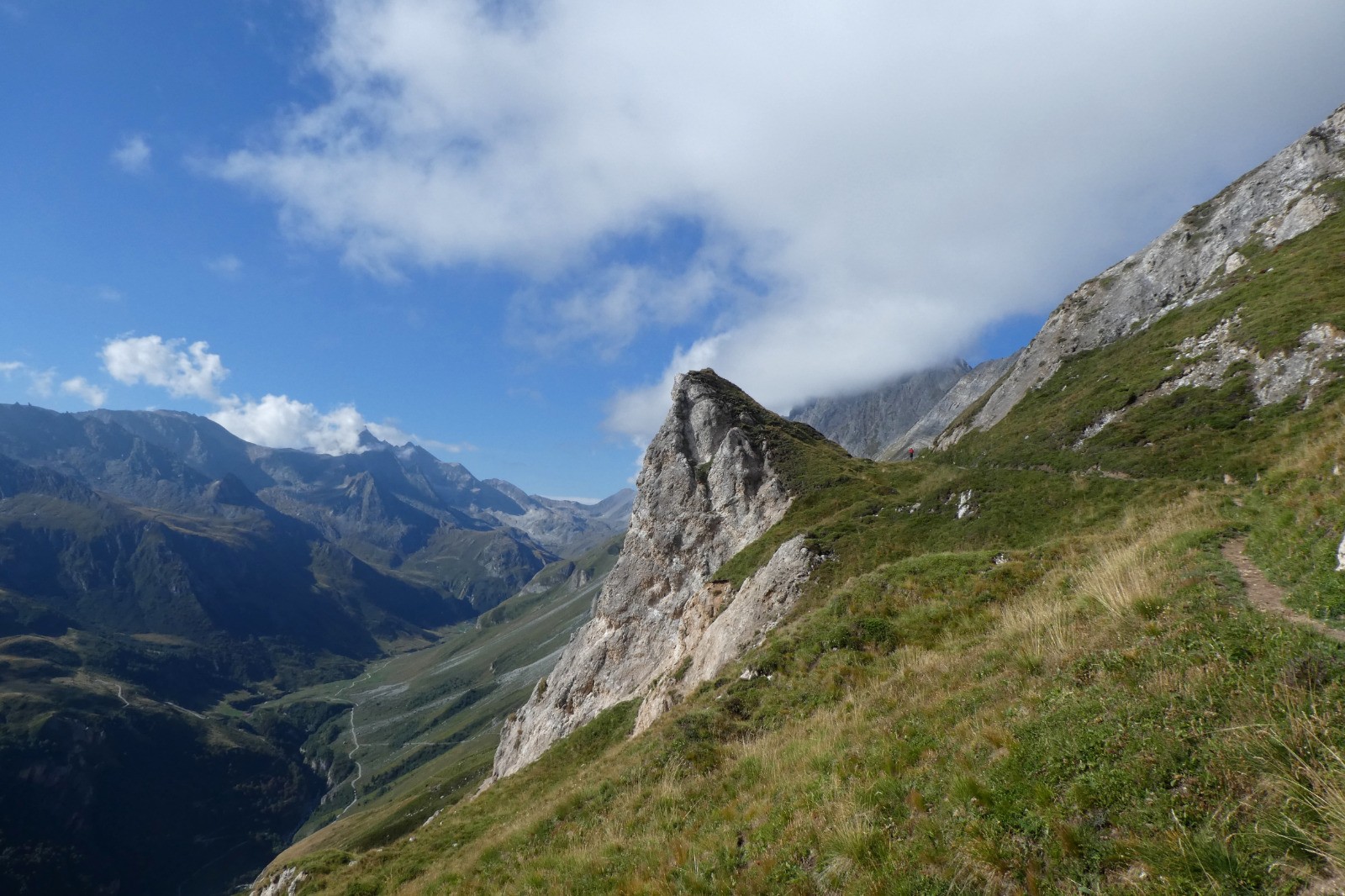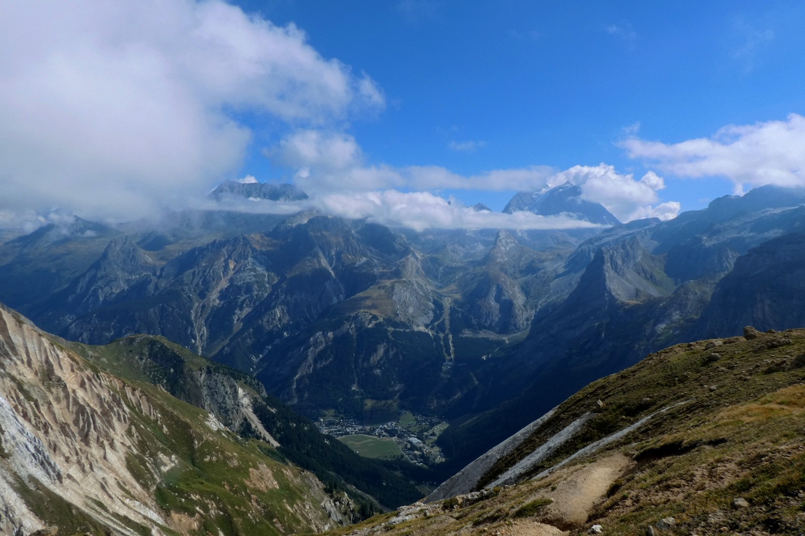 100 virages pour monter au sommet du Petit Mont Blanc d'où la vue sur les glaciers de la Vanoise est sublime. Le passage de la Plassa permet de passer sous les dents de la Portetta dans un amas de blocs rocheux : grandiose !