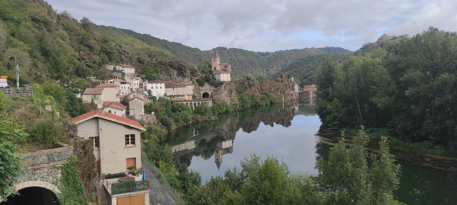 Café a côté dans un bistro au proprio horrible. M'engueule parce que je met mon velo sur sa terrasse (vide), fait mettre dehors les sacs à dos a un couple de randonneurs avec cape de pluie.