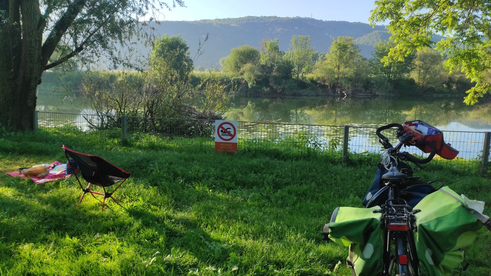 Visite de Dôle, purée ça monte. La Venise du coin, c?est un peu prétentieux. Camping à Ranchot me dit l?OT. Je pose mon vélo devant l?accueil et m?avance pour voir accueil ressemble le camping. Le patron très désagréable me dit que c'est lui c?est pas comme ça,... bref j?ai repéré un autre à 11km et il est tôt. Hélas faillite. Et rien d?ici Besançon, compris. Un petit message à warmshower, qui ne donnera rien. J,avance et m?arrête boire un coup et faire le plein et le point. Les solutions : bivouac, F1, et un camping après Besançon. Et à force, je m?en suis approché. Il est 19hr30, au tél c?est OK ils ferment à 20hr30 et me reste le reste en face.