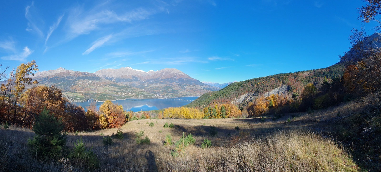 La grimpette est rude depuis le départ du sentier jusqu’à son arrivée sur la piste forestière qu’emprunte l’itinéraire VTT du Tour du Lac de Serre-Ponçon, en amont de son GR de Pays Tour du Lac de Serre-Ponçon, qui lui reste sur la route forestière principale de la Forêt de Morgon. Le retour par la portion de ce même GRP, qui les a ramenés sur cette route, est assez raide et glissant en cette saison.