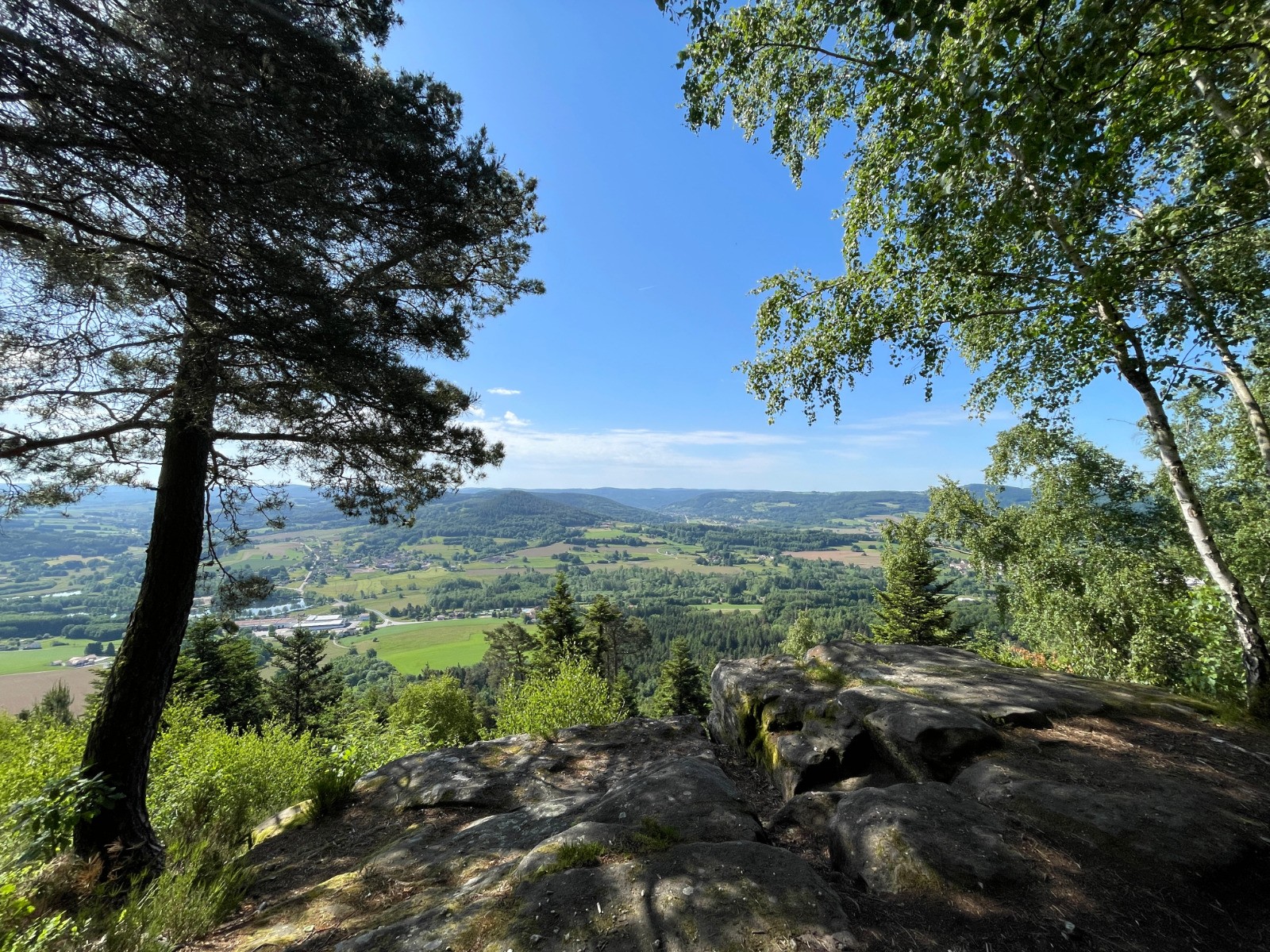 Boucle au départ de Bruyères offrant plusieurs points de vues remarquables (rochers de Borémont, Ermitage, tête de la clochette, mésanges) et de surprenant rochers. C'est aussi l'occasion de découvrir l'histoire de la libération de Bruyères en octobre 1944 et la formidable bataille du sauvetage du bataillon perdu. Ce circuit peut débuter ou se terminer par l'ascension de la Grande Avison pour profiter de sa tour panoramique.