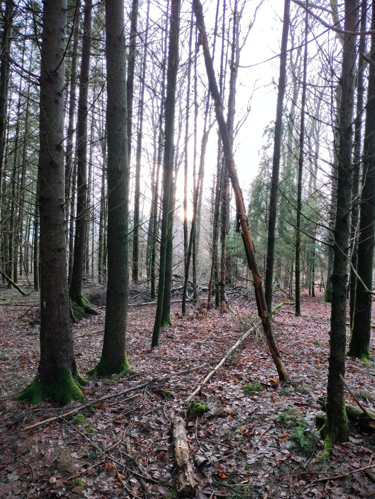 Haebesch, l’atmosphère se transforme : on glisse d’un paysage ouvert à un environnement plus intime et ombragé. L’entrée dans la forêt se fait naturellement par un sentier large et accueillant. Imprégné par le calme, le bois est majoritairement composé de hêtres et de chênes, et la terre offre une marche souple. Le parcours alterne agréablement entre lignes droites et courbes douces, ponctuées de légères montées et descentes.