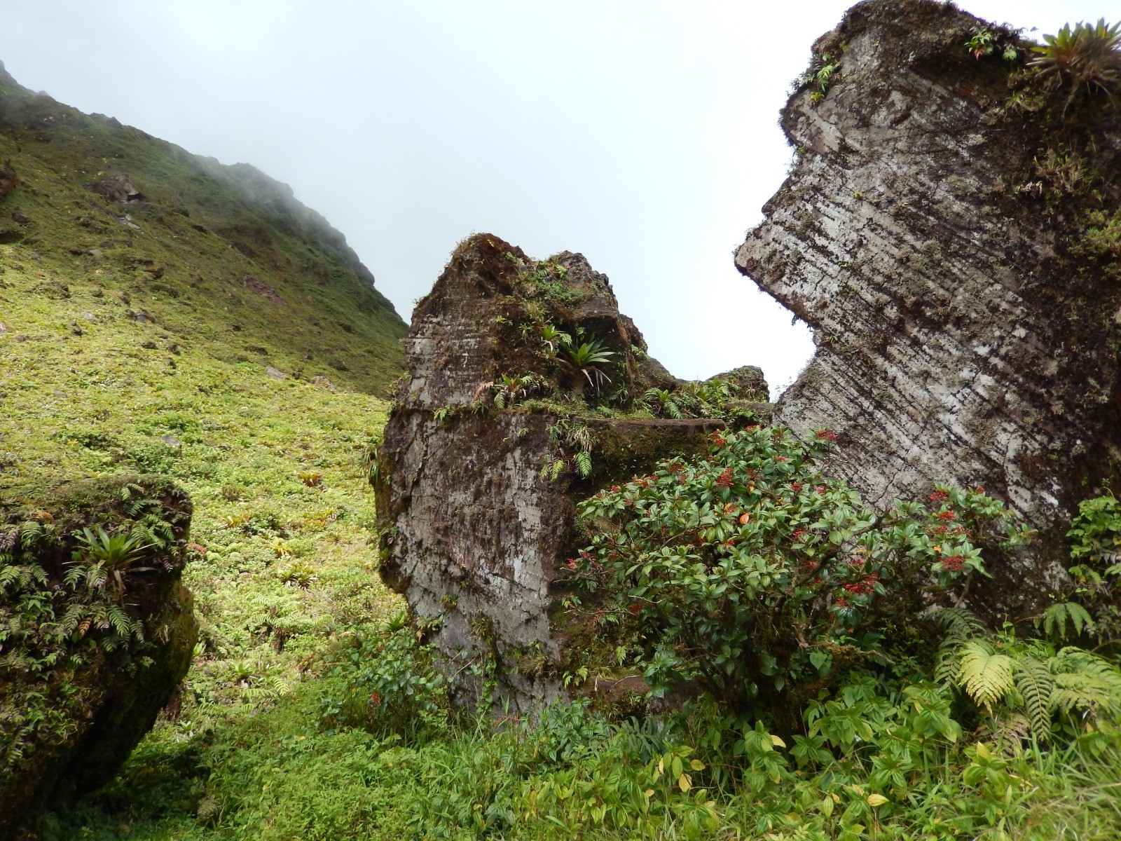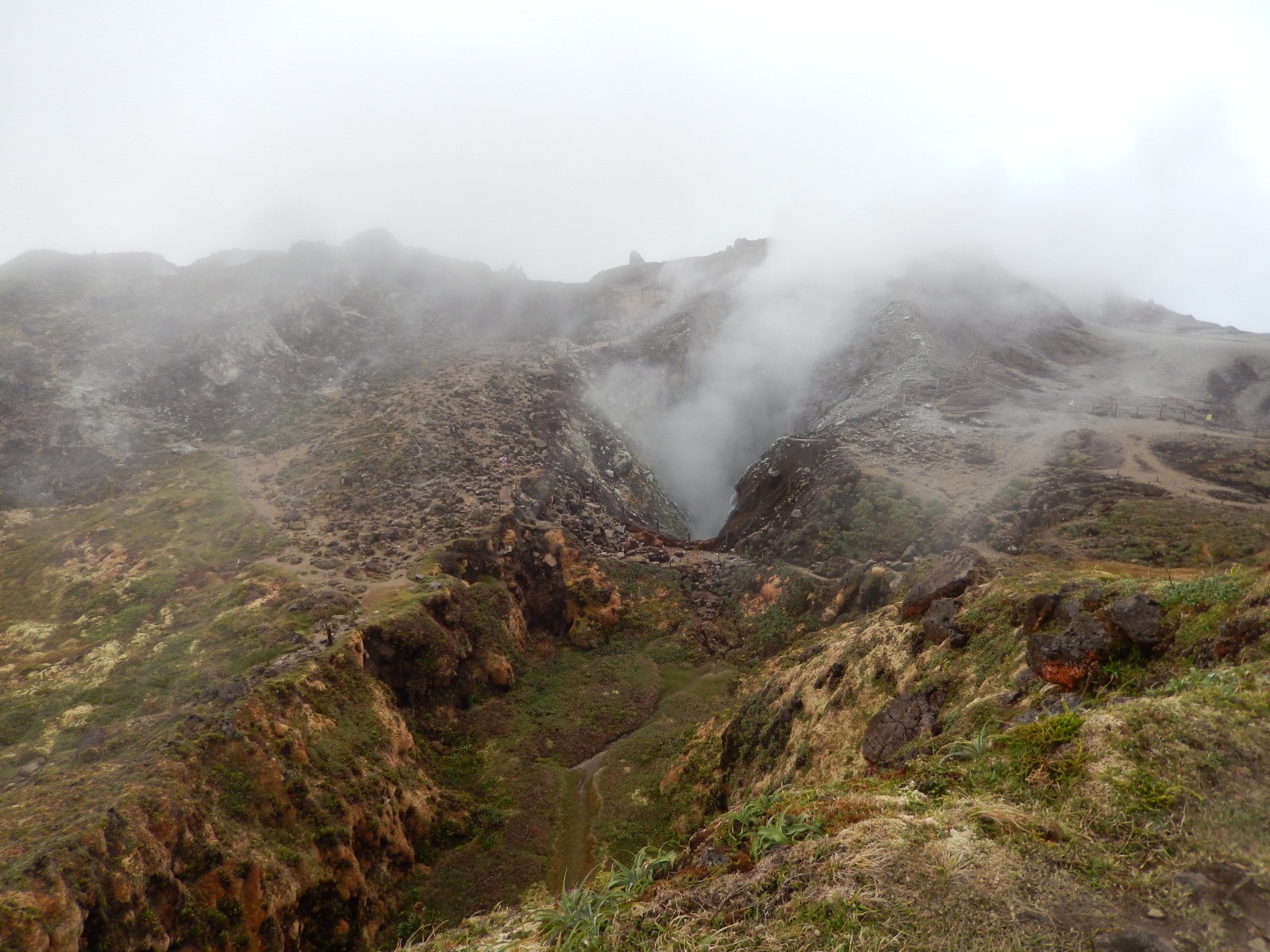 Départ depuis le parking des Bains Jaunes. Ascension de la Soufrière puis passage par le Col de l'Echelle. Poursuivre sur la Trace de l'Echelle jusqu'à la Citerne. Retour par la Trace de l'Armistice et la trace de la Chute du Galion.