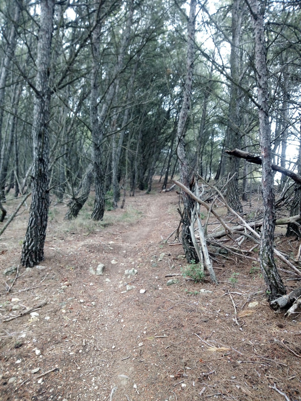 sortie trail dans la pinède de Nissan, site protégé, passage par le pont de Parazols et la chapelle St Christol.