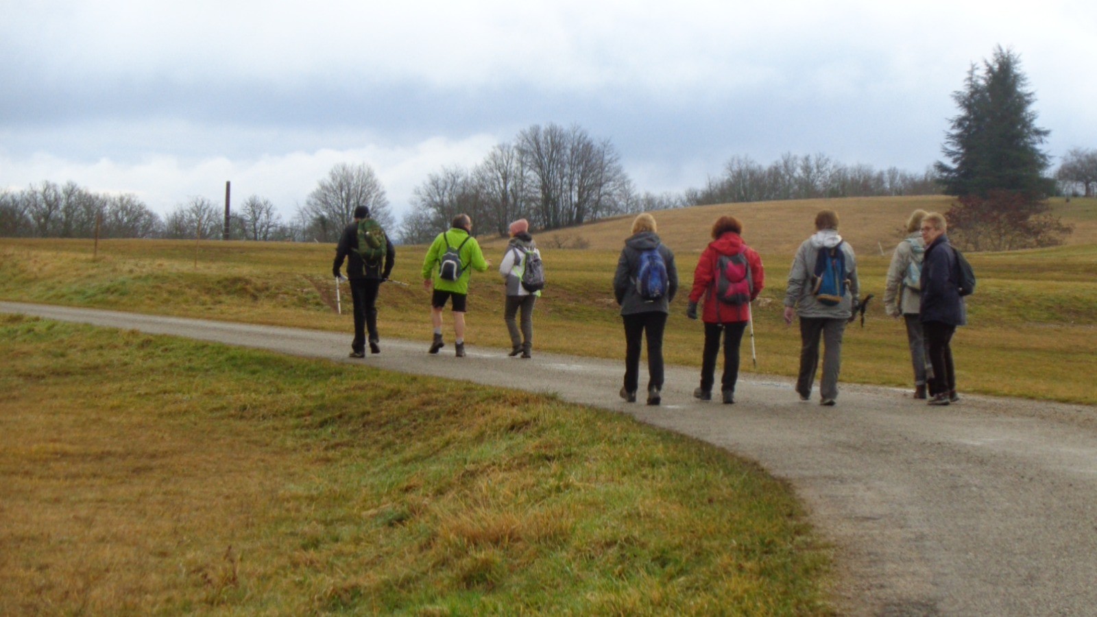 Randonnée assez dure: montées dans la forêt environnante et descentes glissantes feuilles mortes mais bon à part cela nous venons pour marcher, nous n'avons pas eu de pluie c'était l'essentiel. Je précise pour le cheval et son maître que je lui ai demandé si je pouvais faire une photo il était d'accord.