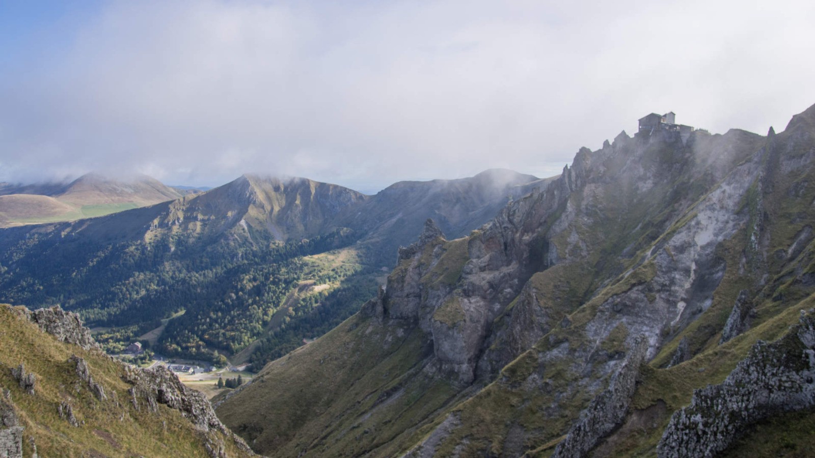 C'est enfin le jour de se mesurer au plus haut sommet de la région, 1885 m, en partant depuis la station du Mont-Dore. Aujourd'hui beaucoup plus de nuages et de vent, "ambiance montagne" à souhait et une belle vue panoramique...