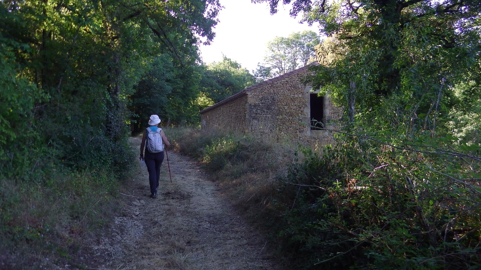 Boucle balisée en jaune (poteaux avec cabochon plastique jaune, typiques de la Dordogne)