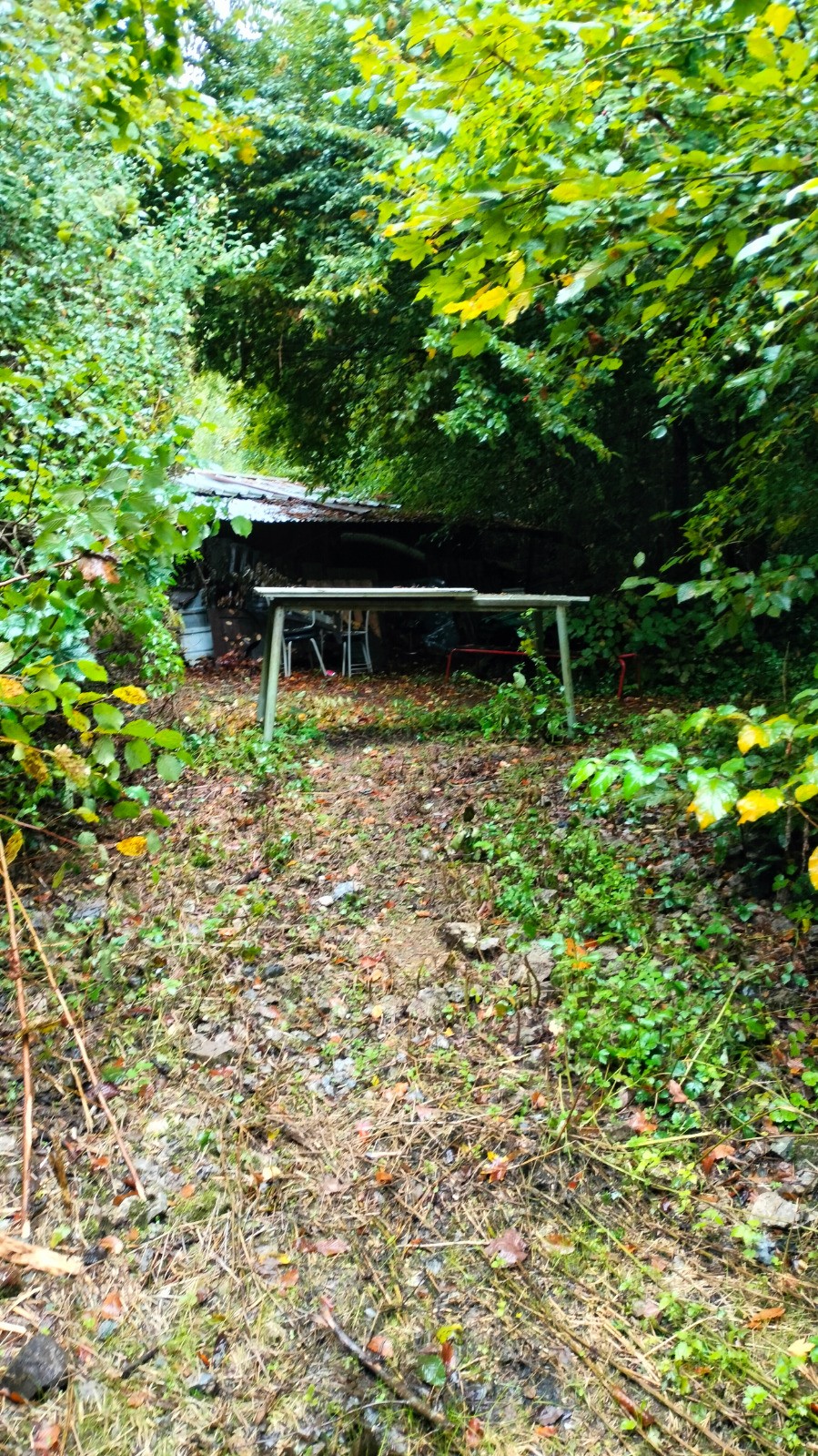 Pour la balade, nous quittons le centre du village pour rejoindre les bois alentour. La pluie se met à tomber, les sentiers sous les chênes et les hêtres s’assombrissent, et l’air devient plus frais.