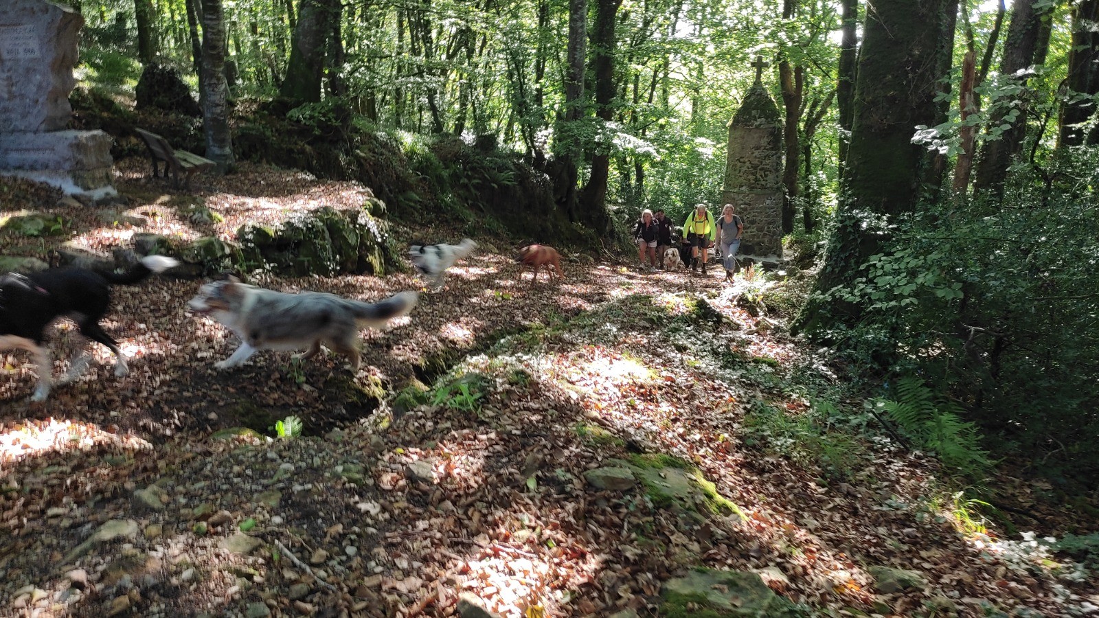 Avec Clarisse / Ramsès, Véronique / Lemon, Catherine / Rozina, Sophie sans Oslo, Philippe / Mouss, Savane et moi. Temps magnifique, quelques distances sur route mais peu de voiture. Des conditions idéales avec des humains et leur chien idéaux. Seule ombre au tableau : l'absence de Mylène qui fut un peu l'inspiratrice de cette sortie. Remets toi, Mylène et arrête de jouer les gamines, tu as passe l'âge (O_ö)