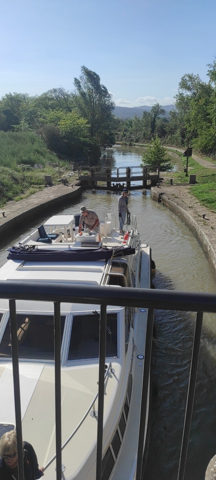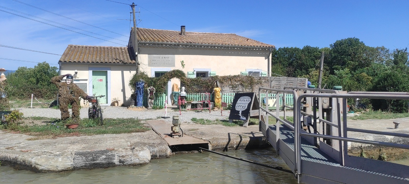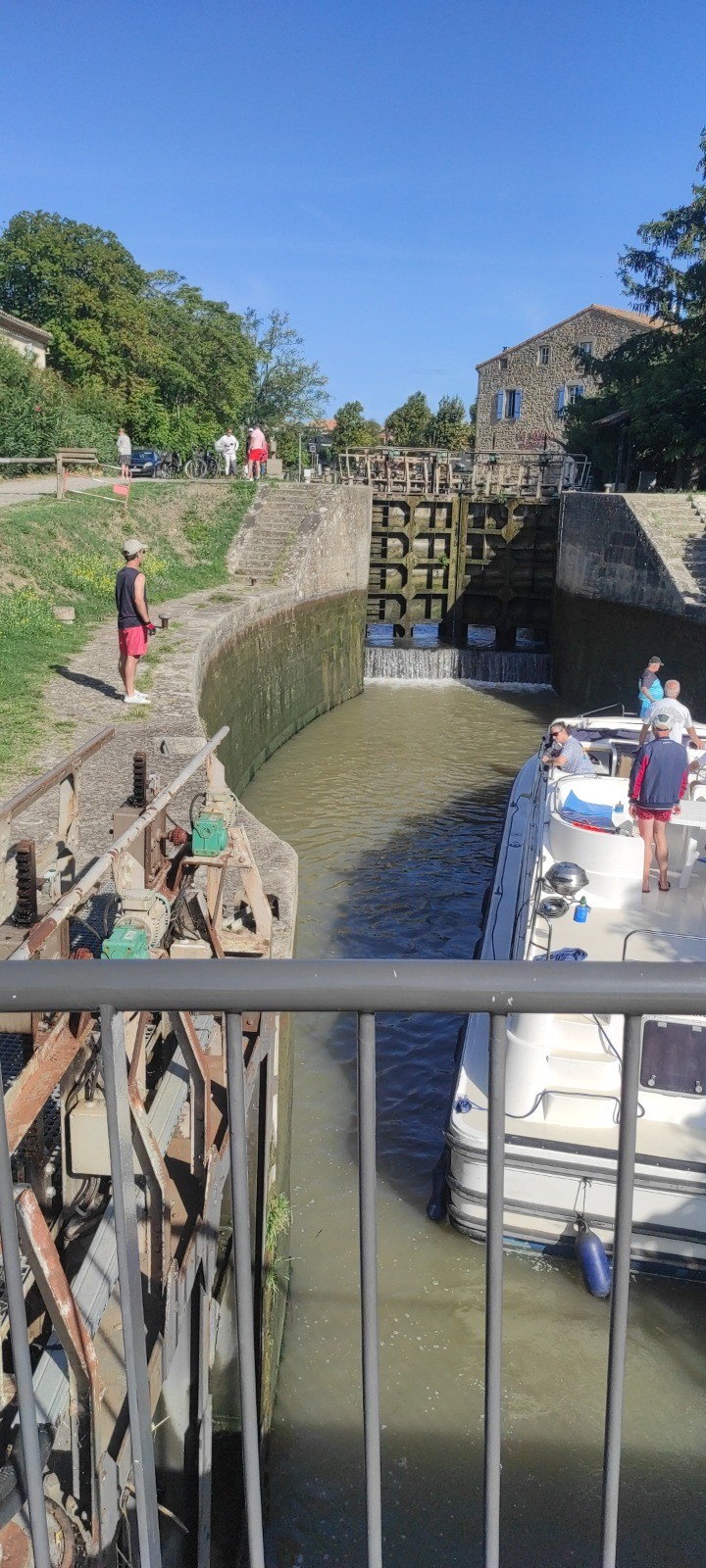 Je roule beaucoup et m'arrête aux écluses, certaines sur plusieurs niveaux. Le terrain est toujours du chemin mais globalement assez roulant. J'irais finalement assez près de bezier. Peu de commerces et de café d'ouverts. J'ais fait le plein pour la soirée et même demain.
