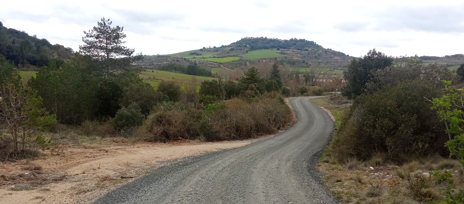 je quitte Limoux ce matin avec un ciel lourd, presque suspendus au-dessus de moi, un gris perle qui enveloppe les collines. Le vent, puissant, te pousse sur chaque montée, et les bourrasques semblent murmurer des secrets anciens. Malgré les nuages et ce vent incessant, chaque coup de pédale devient une quête, un voyage au cœur des éléments, jusqu’au sommet mystique de Rennes-le-Château.