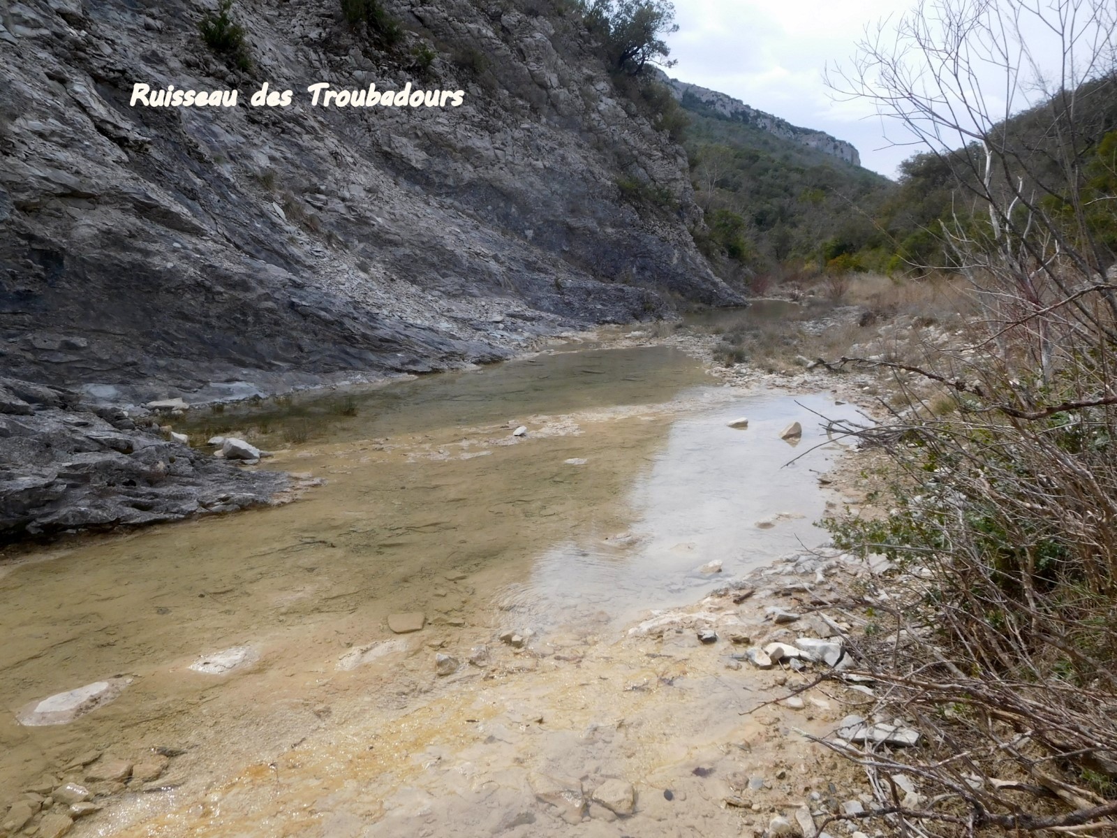 A voir Grotte et baume des Camisard le hameau de Vacquières, vous cheminerez le long de l'ancienne voie SNCF qui reliait Beaucaire au Martinet 88km avec ses viaducs et ponts. Puis le parcours vous conduit après un passage ou le sécateur peut être très utile car pas mal de végétation. Mais vous ne regretterez pas ce sentier un peu perdu qui vous permet de rejoindre l'agréable ruisseau des troubadours . coordonnée UTM pour le début de ce sentier 31T X=599734 Y=4882379 voir sur la carte