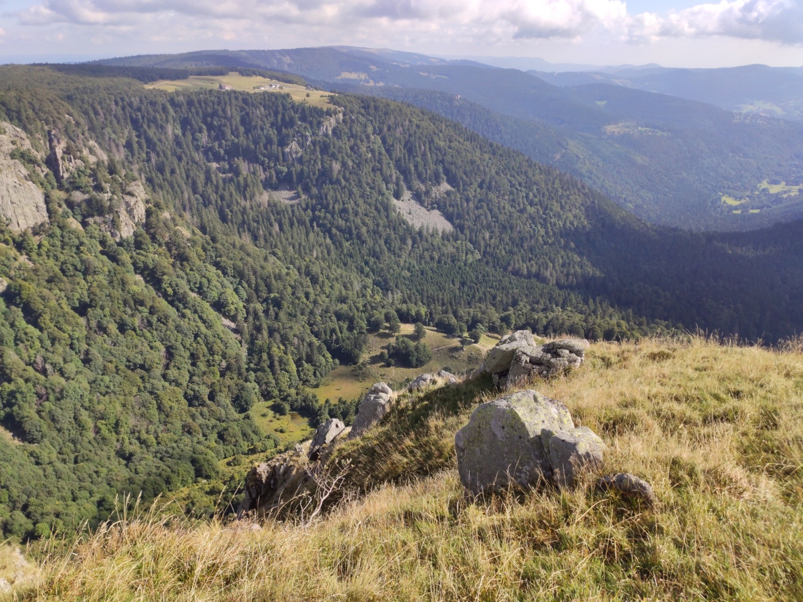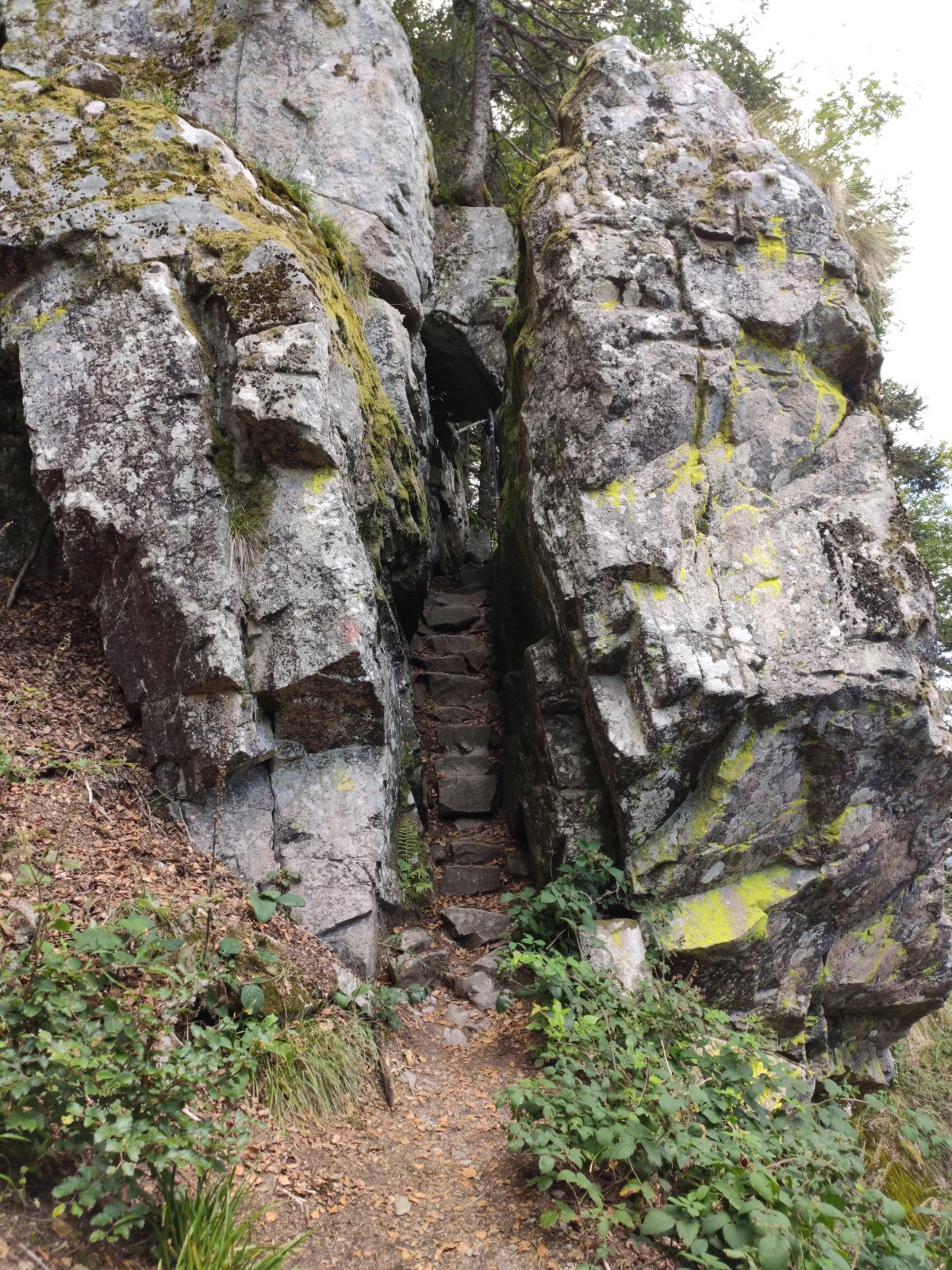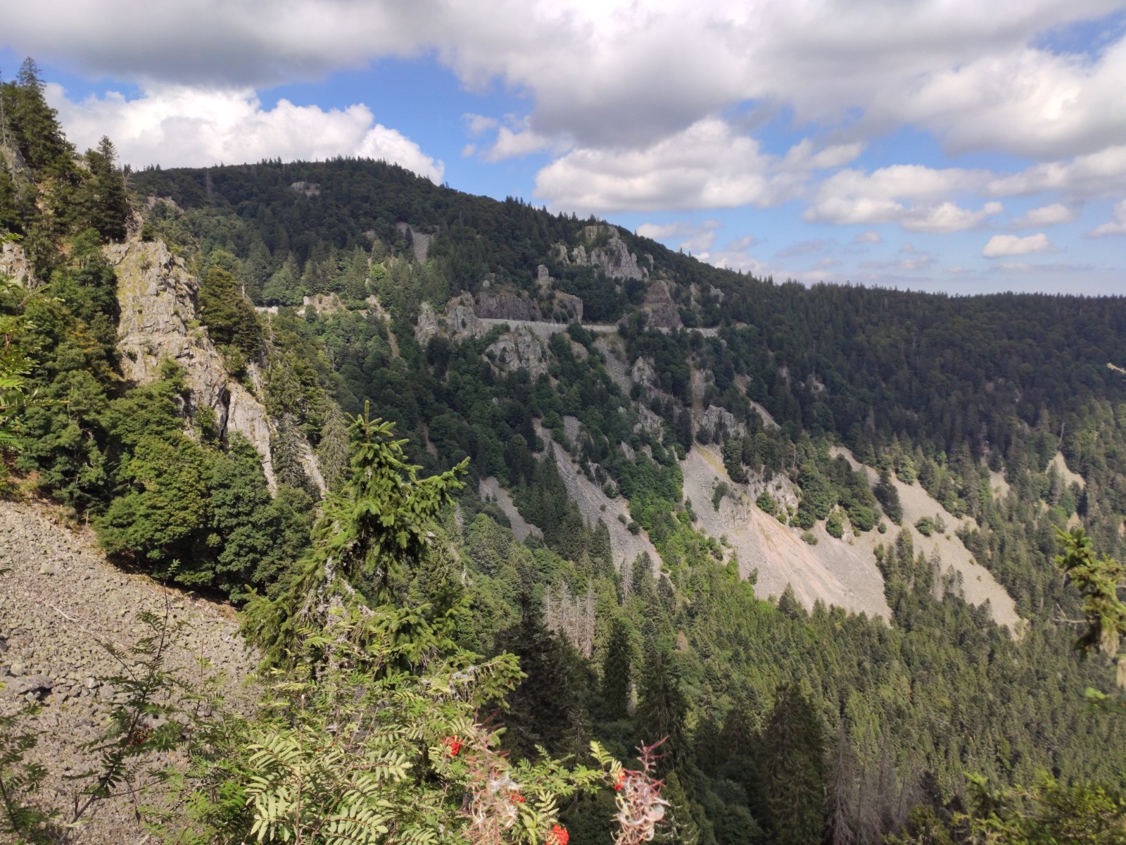 Col de la Schlucht - Belvédère de la Petite Fecht - [GR5] - Rochers de la Martinswand - Col de Falimont - Sentier des Couloirs - Schaeferthal - [hors piste à 5.28 km] - Schallern - Sentier de la Bloy (GR531] - Frankenthal - Krappenfels - Sentier des Roches - Col de la Schlucht - Spitzenfels - Hirschsteine - [GR531] - Col de la Schlucht