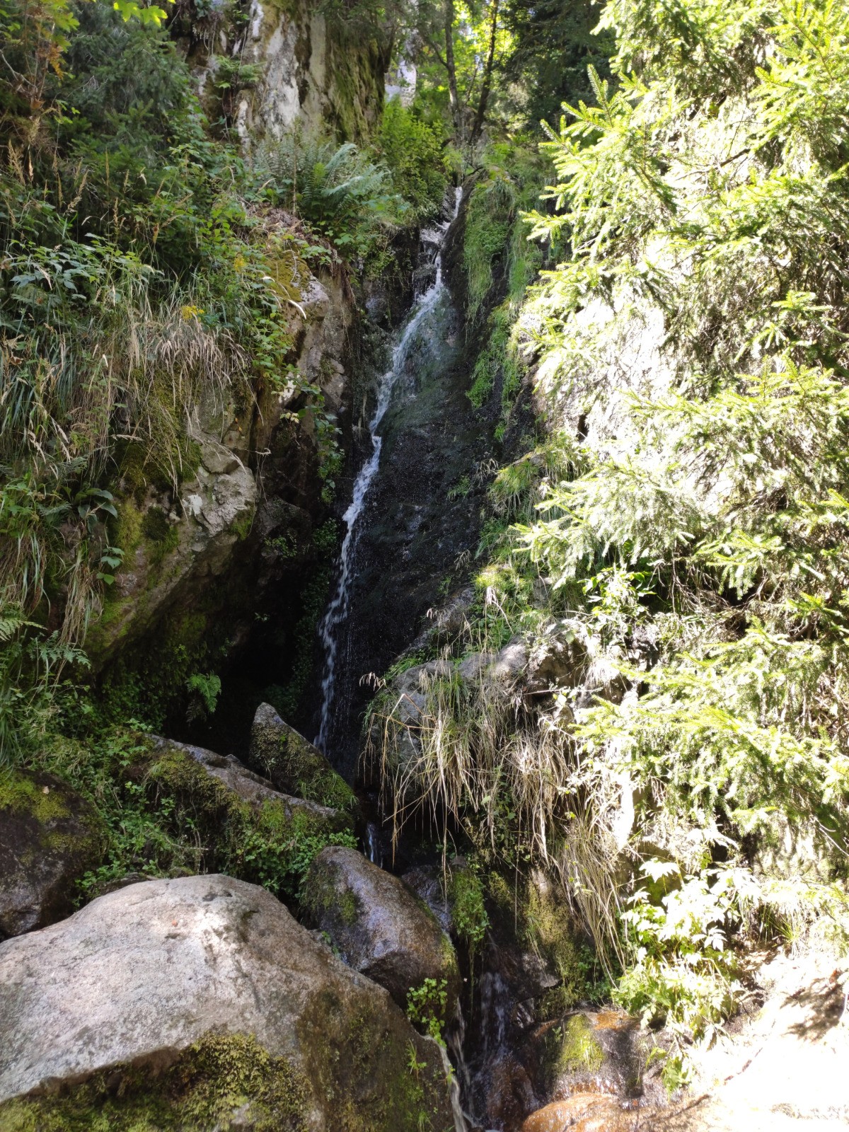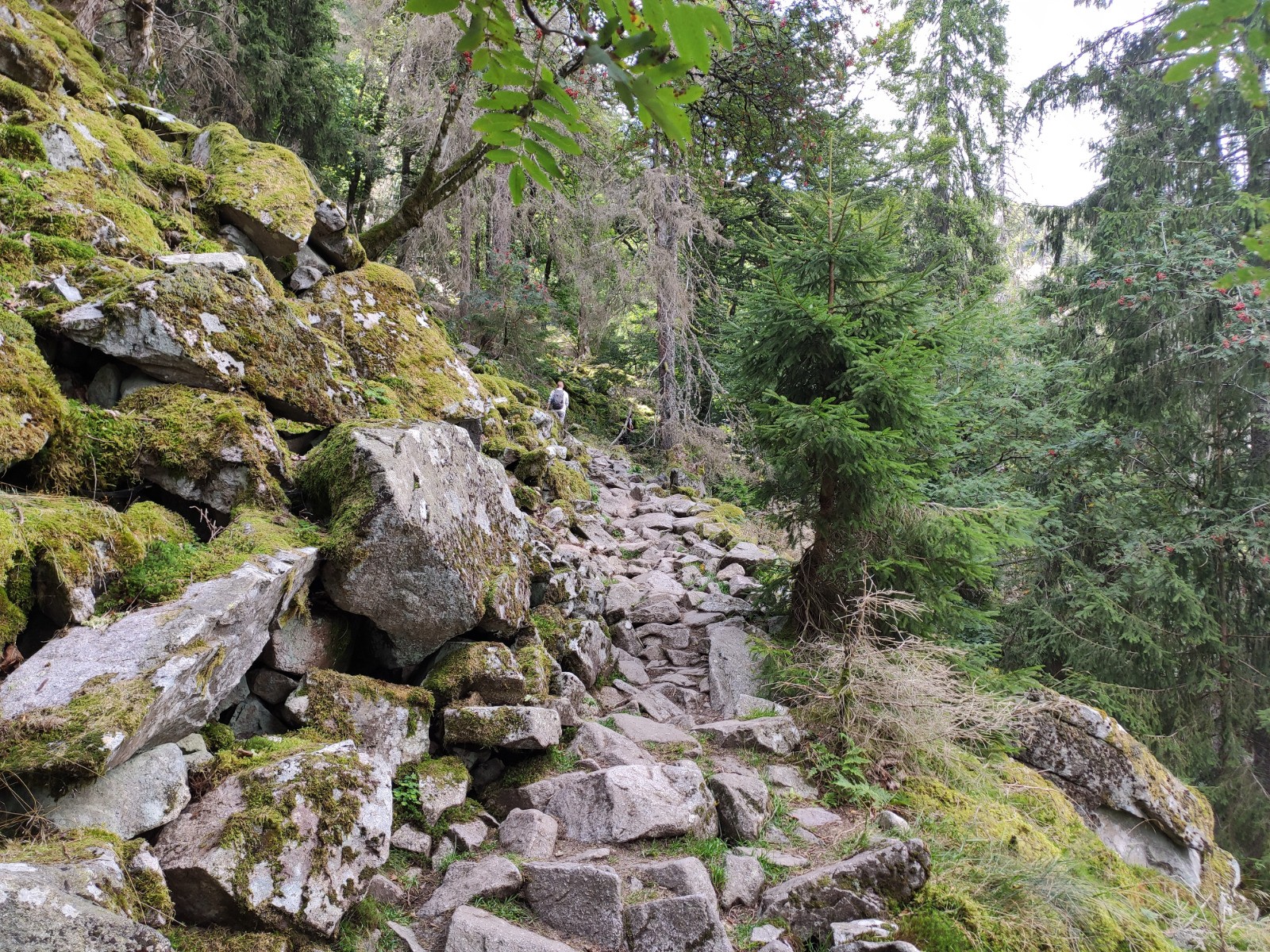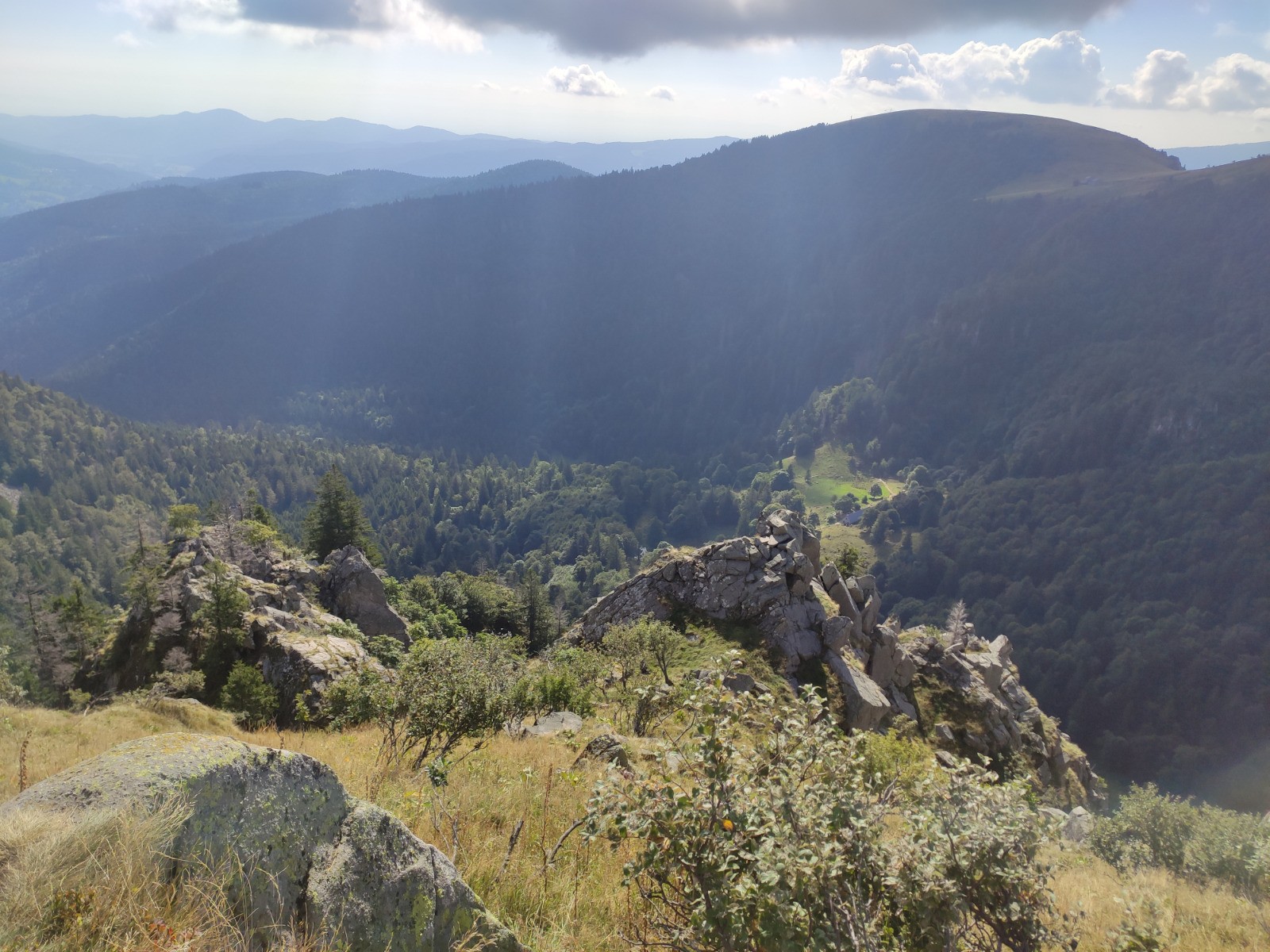 Col de la Schlucht - Belvédère de la Petite Fecht - [GR5] - Rochers de la Martinswand - Col de Falimont - Sentier des Couloirs - Schaeferthal - [hors piste à 5.28 km] - Schallern - Sentier de la Bloy (GR531] - Frankenthal - Krappenfels - Sentier des Roches - Col de la Schlucht - Spitzenfels - Hirschsteine - [GR531] - Col de la Schlucht