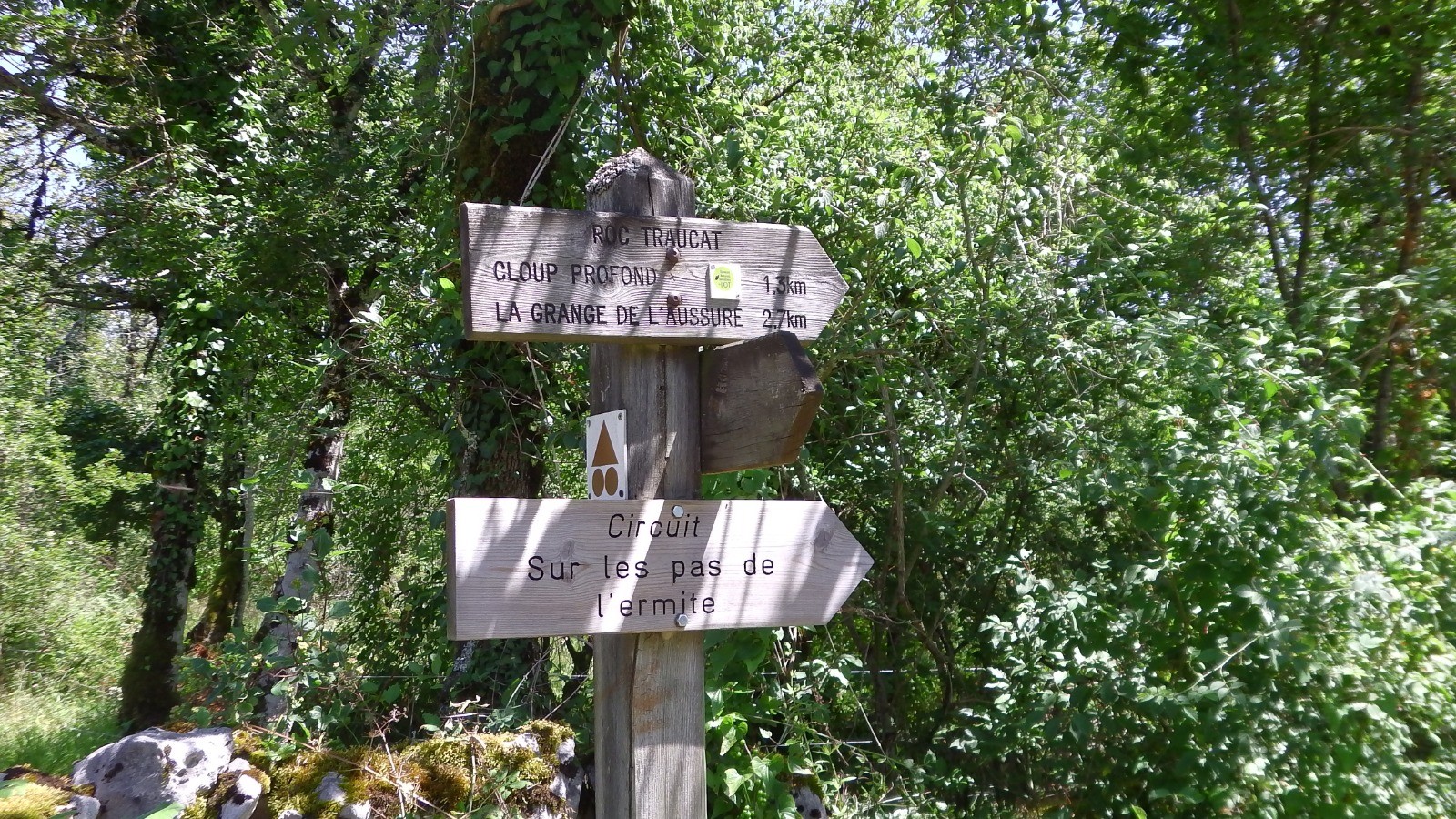 Derrière l'église, dos à l'église partir à gauche puis à droite sur une petite route. A la côte 396 (présence d'une croix à droite dans la végétation) partir par le chemin de gauche et descendre jusqu'au chemin qui part à droite à la côte 366. Refermer la clôture si elle était fermée à votre arrivée. Ce large chemin monte sur la plateau, passe près d'un château d'eau et s'arrête à une clôture (grillage) une rangée de gros blocs de pierre permet d'enjamber cette clôture facilement.