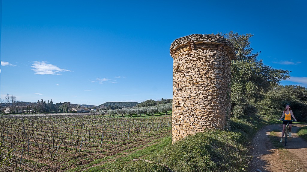 Joli circuit dans le Vaucluse avec sur le parcours le sentier des bories, village d'Uchaud, voie romaine, château du Castellas, chapelle St Michel, calvaires, chapelle St Baudile, fenêtre sur Rhône, abords de la forteresse médiévale de Mornas, Mornas, etc...
