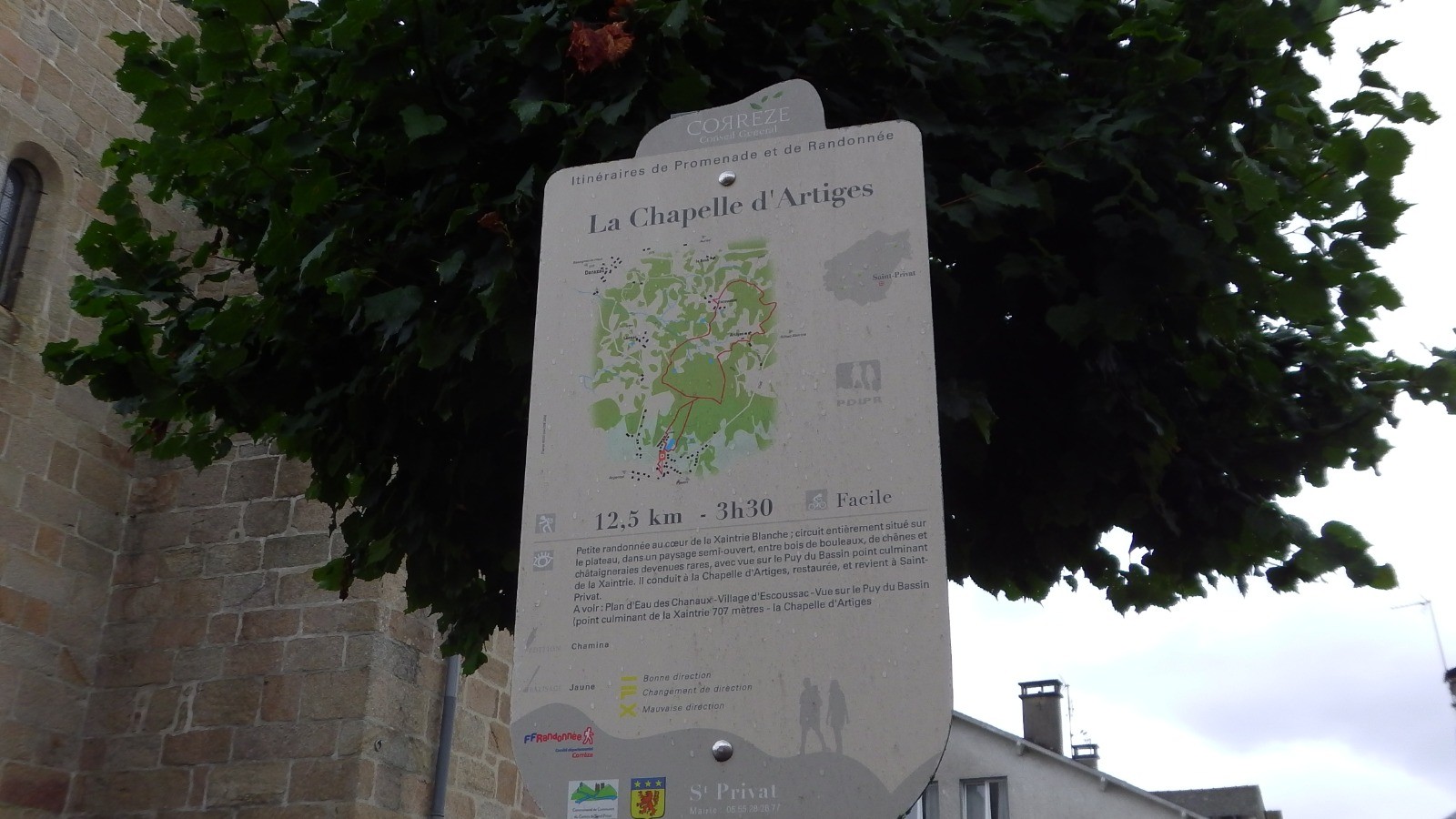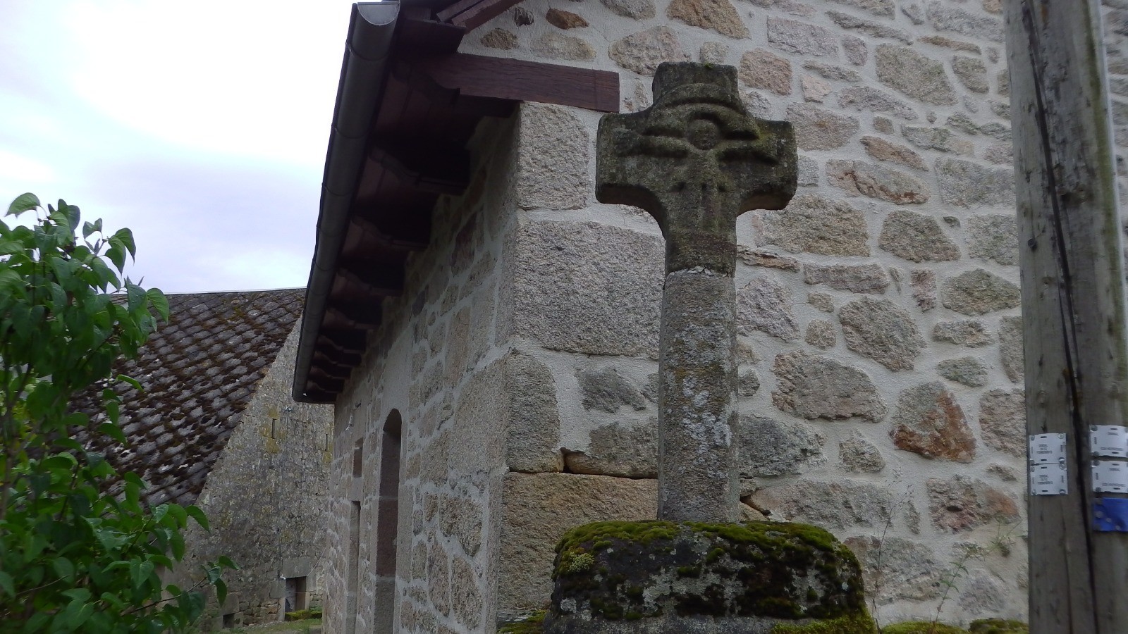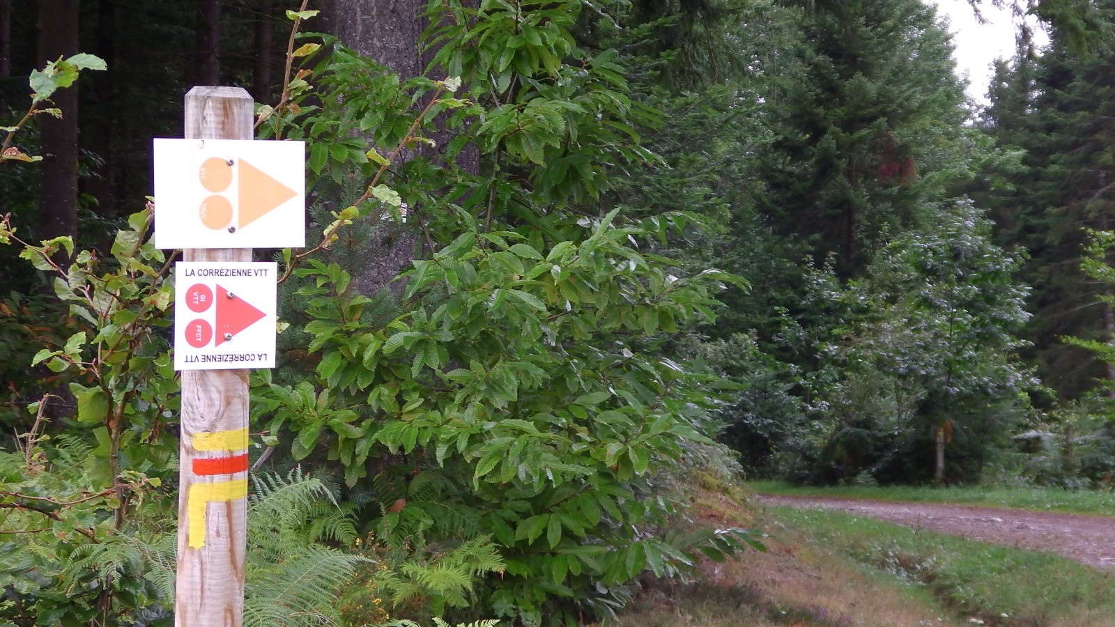 Par contre, entre les km 4 et 5, ma trace évite Escoussac ... on s'est vite retrouvé sans chemin, à franchir des clôtures électriques, une galère ! Solution : suivre le balisage n°5, qui va directement dans le hameau, faire un tour dans Escoussac mais surtout le quitter par la route au Sud du hameau, route qui devient un beau chemin en direction du Puy Gramat.
