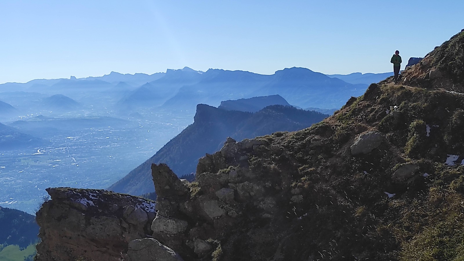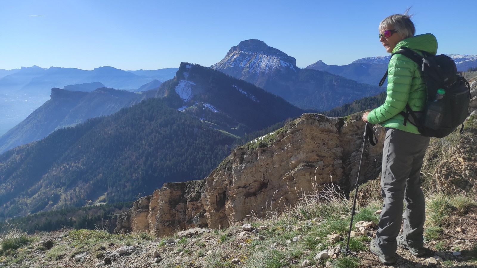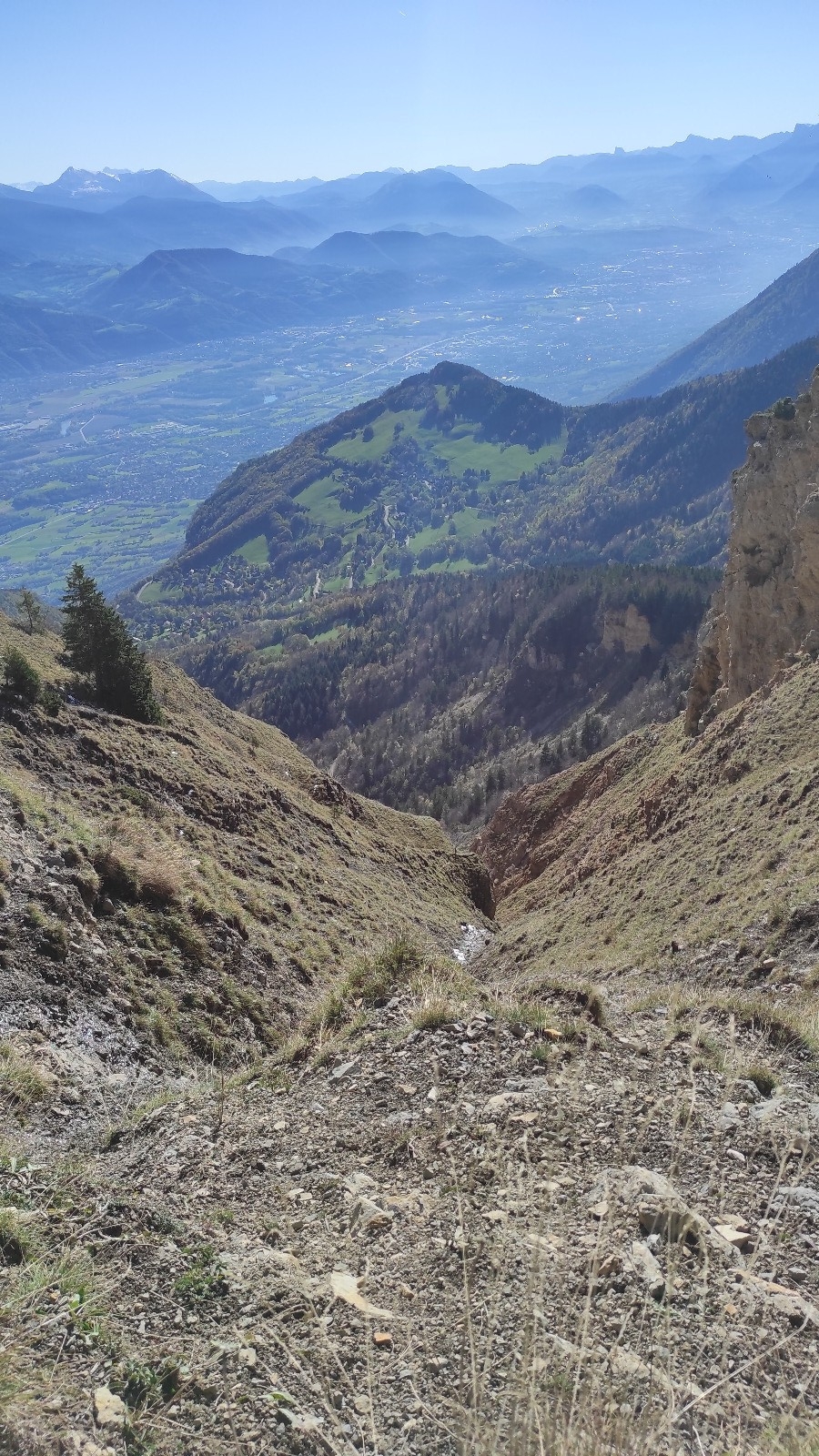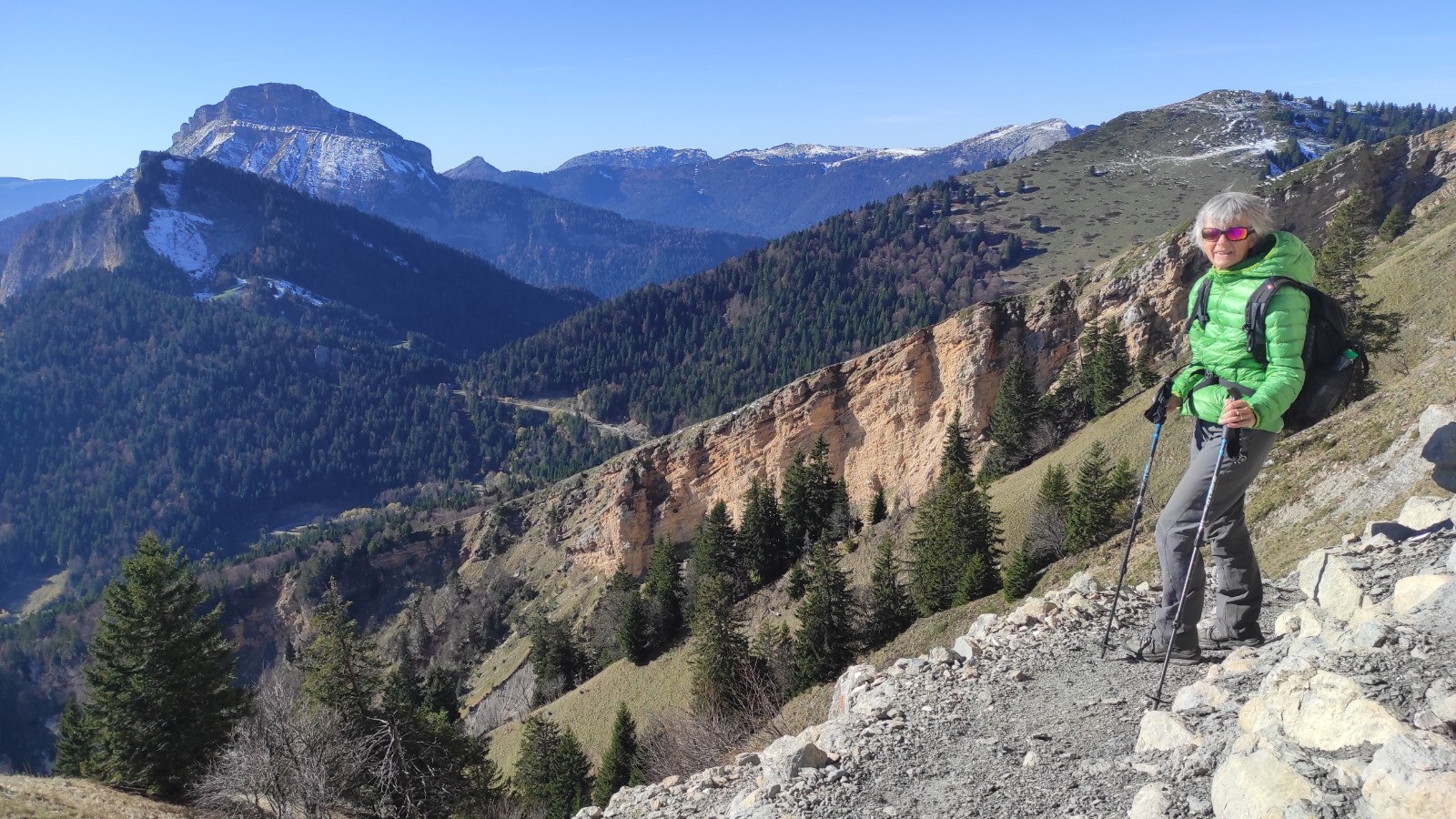 Avec Sylvie, en partant de St Pancrasse et passant par la cabane du berger, petit coup d’œil à l'entrée de la grotte Annette, souvenir de notre traversée sous terre depuis le trou du Glaz. Un chamois nous observe avant le pas des Terreaux. Le passage est beaucoup mieux sécurisé que la dernière fois ou nous l'avions fait.