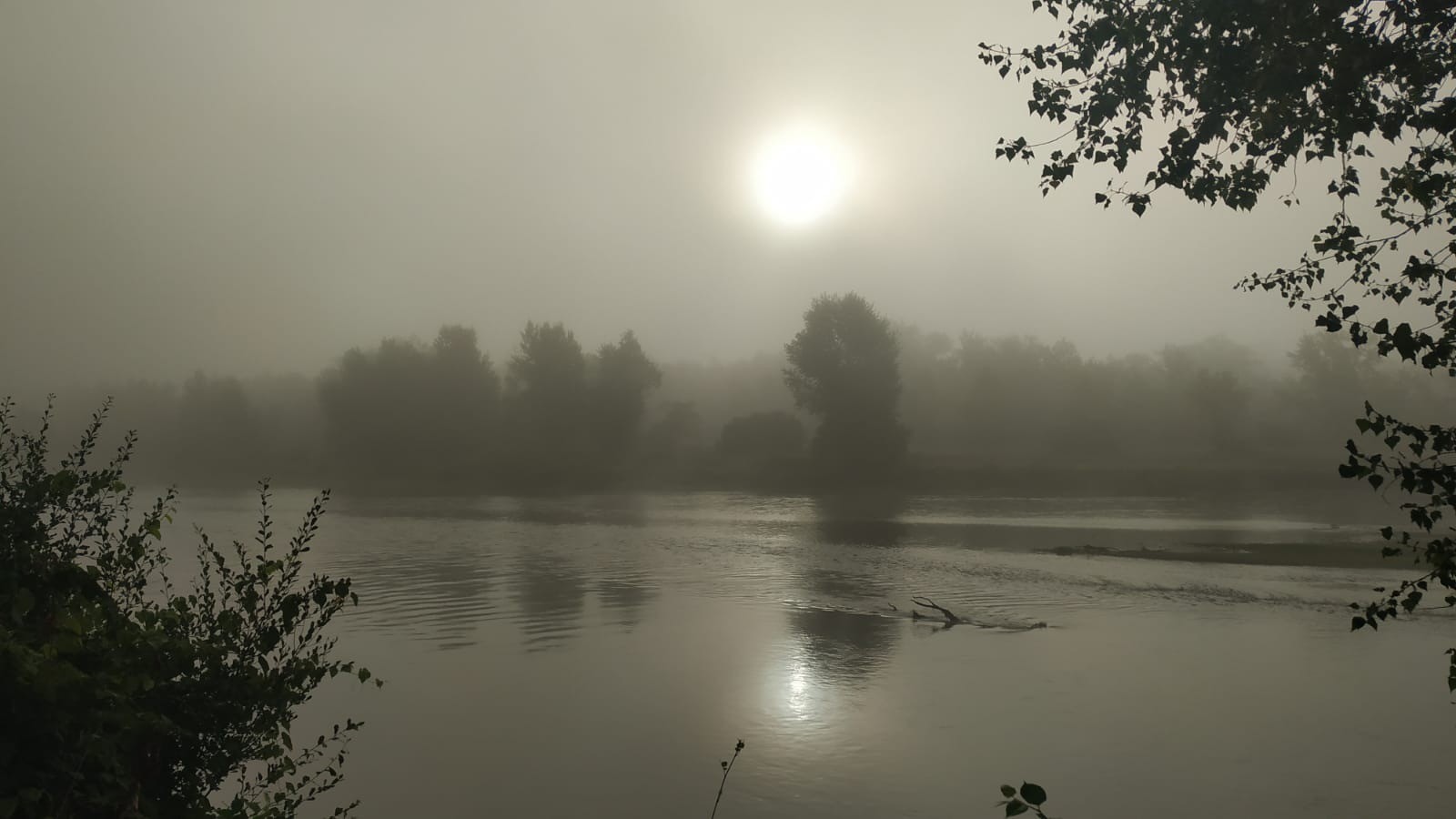 Et bien non, ni pluie, ni orage nuit super bonne au bord de l'eau. Hier nous nous sommes baigné dans la riviere. Eau chaude, pas profond mais un peu de courant. Au réveil un bonne brume qui rend le paysage magnifique. Elle se dissipe vite. Nous essayons d'être plus matinal au départ pour éviter les grosses chaleurs mais ne gagnons qu'un quart d'heure.