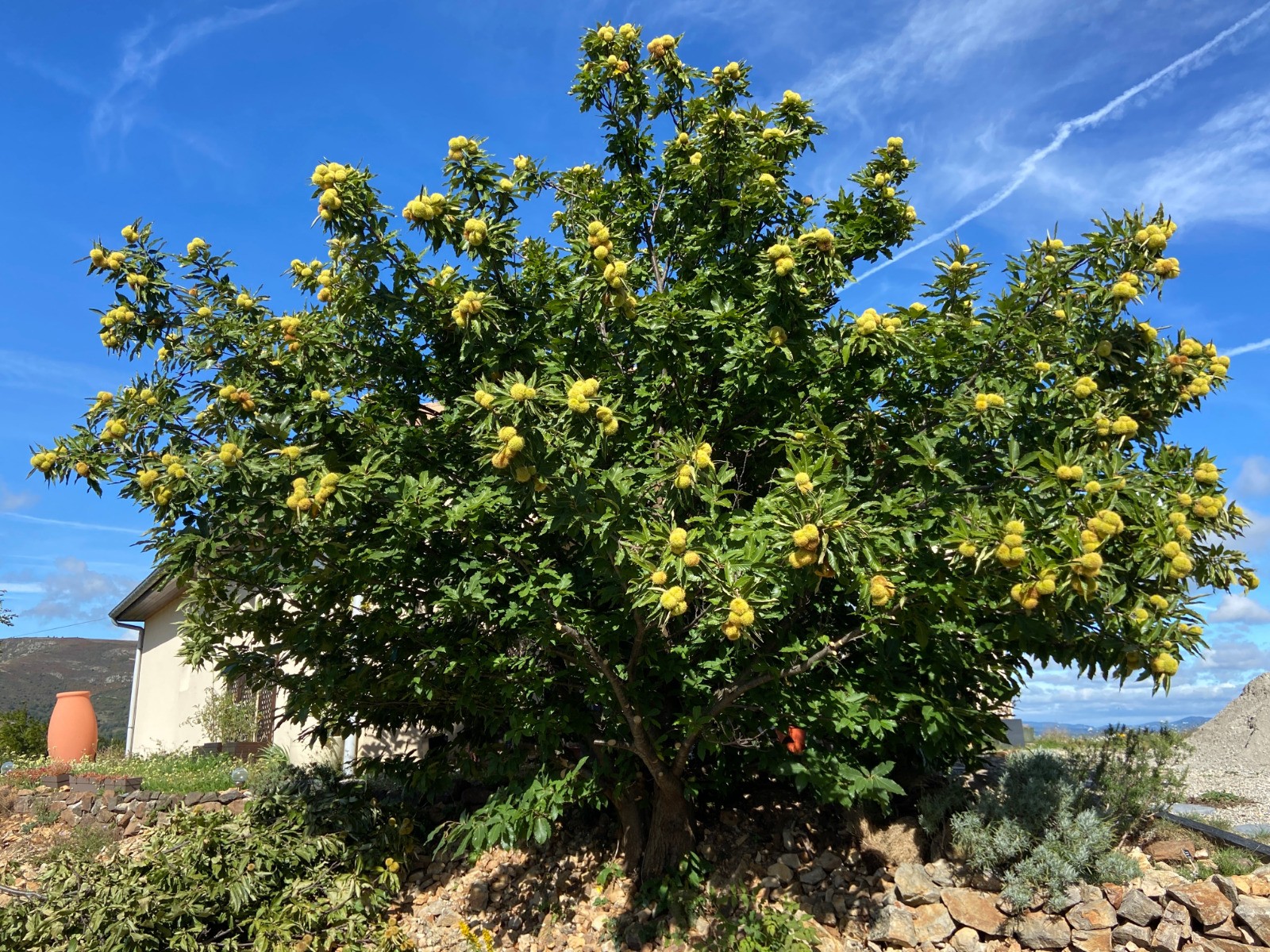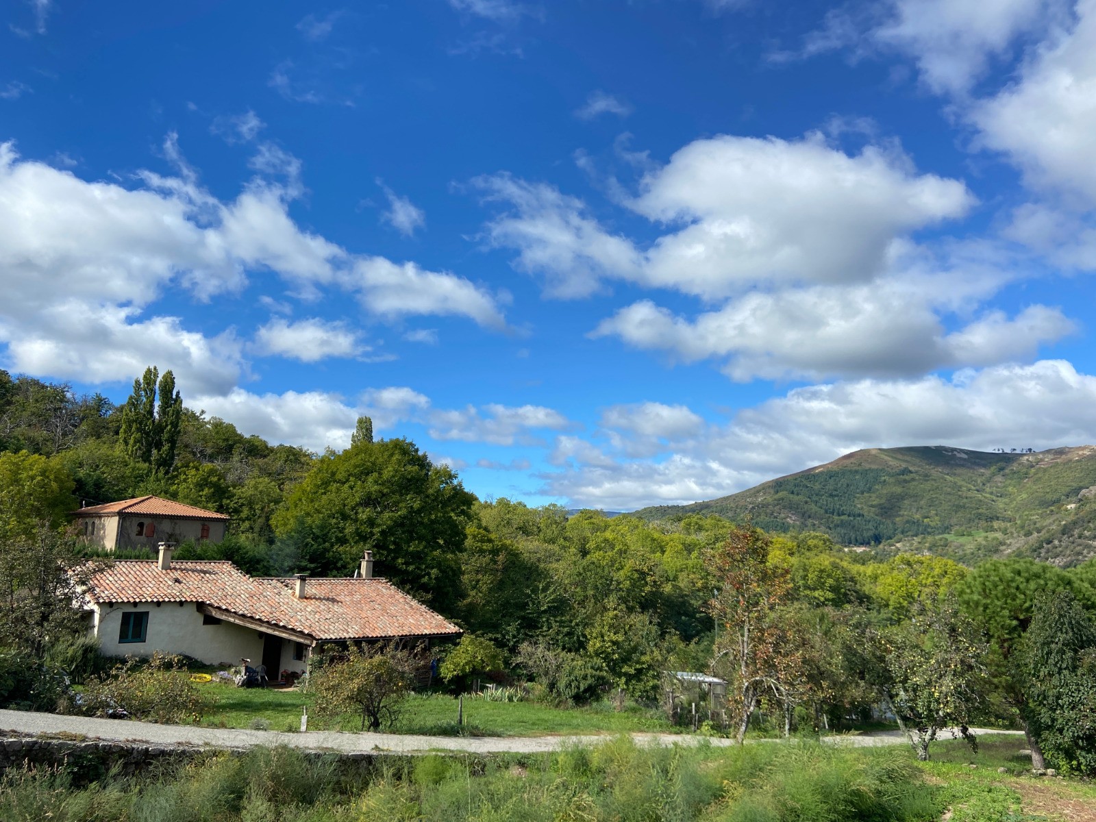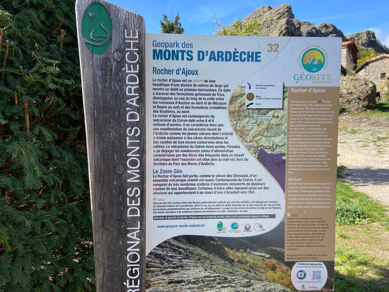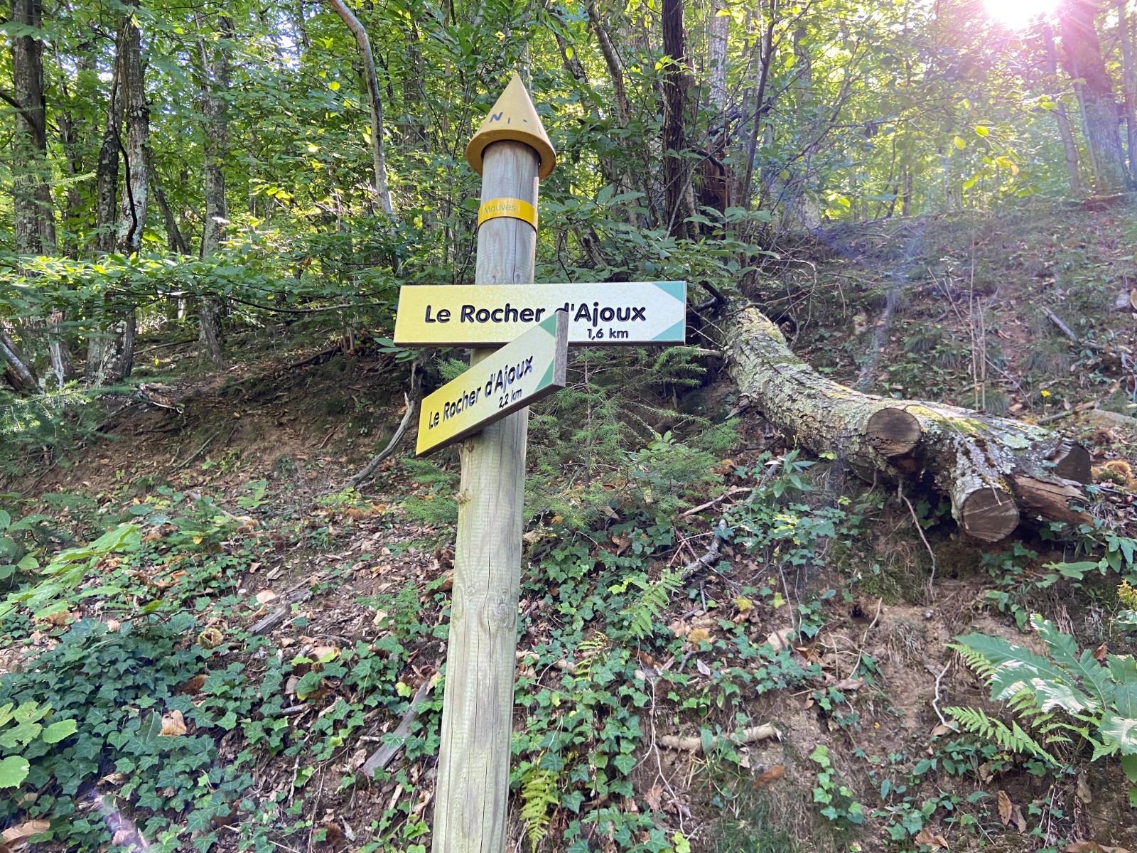 Le sentier entre Magérouan et Mauves est un peu sanglier. Il faut être très vigilant sur les balisages jaune et blanc qui sont presque effacés. Avant d'arriver à Mauves, la clôture qui empêchait le passage avec un panneau "propriété privée" en début d'année 2022, est enlevée (traine par terre). J'ai rencontré une native de Mauves qui m'a conseillée de signaler le problème à la Mairie d'Ajoux. Elle conduisait une 4l bleu marine que j'avais vu le samedi précédant ma rando sur le parking de Super U. Quelle coïncidence ! Elle me conseille de descendre vers Longearate. Cela rallonge de 0.5 km, mais c'est tellement mieux que de passer sur l'autre versant avec des engins qui continue de débarder et de créer des pistes qui défigurent le paysage. A Ajoux, possibilité de monter le Rocher en aller retour. Au lieu de descendre vers la Pra, puis remonter vers Lasvastret, j'ai pris la route qui va plein sud, en direction de Pré Chevalier. Au-dessus de la ferme, prendre une piste bien propre au départ, puis elle est envahie par les ronces. Au bout de la piste, prendre la direction du Rocher Noir. Mais il faut enjamber une clôture et descendre dans une trace assez creusée par la pluie, puis envahie par les ronces. Avant de retrouver la piste qui vient de Lavastret et qui conduit rapidement à Pourchères.