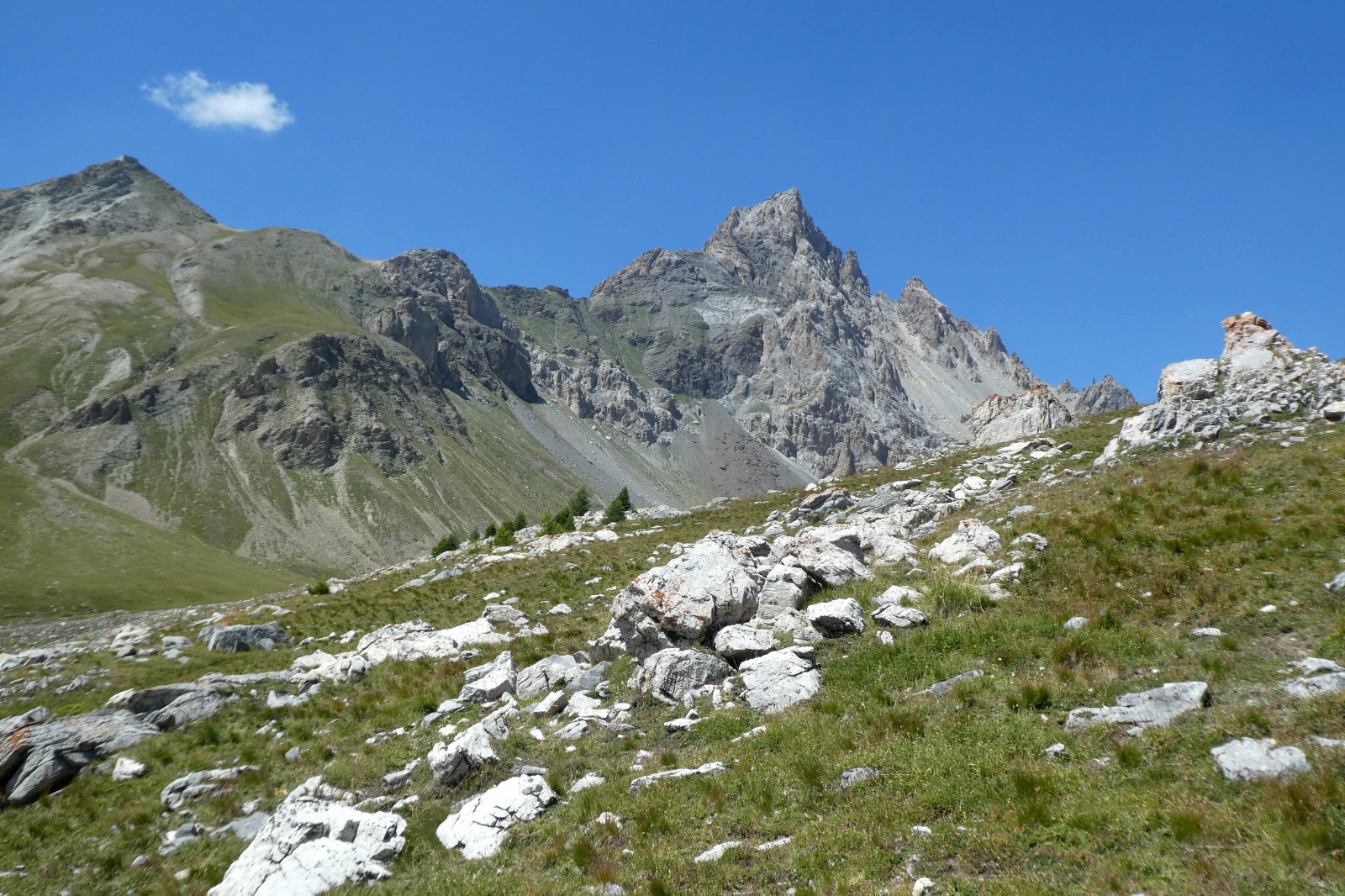 Ambiance minérale puis verdoyante autour des sommets de La Meyna et de la Tête de Viraysse.