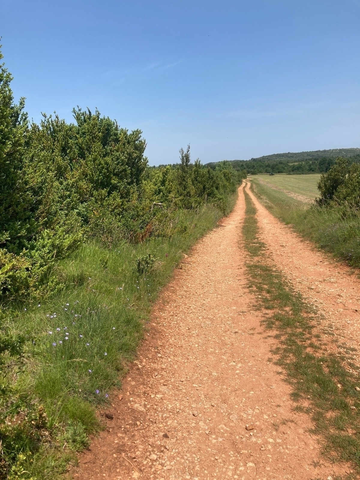 Départ de L’Hospitalet du Larzac, pouratteindre la cité Templière de La Couvertoirade et ses remparts.