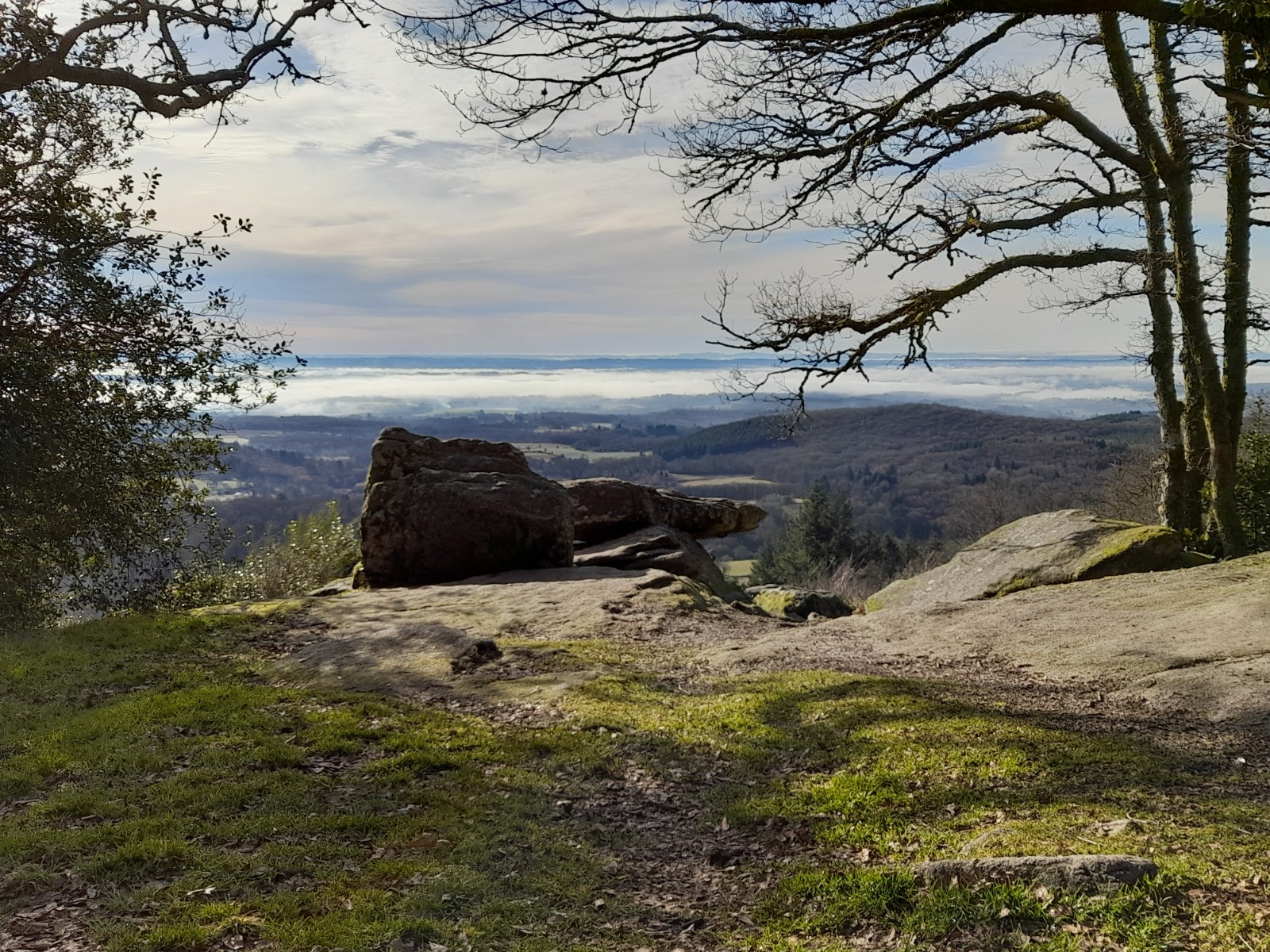 La Pierre branlante avec un peu de brume et descente au départ.
