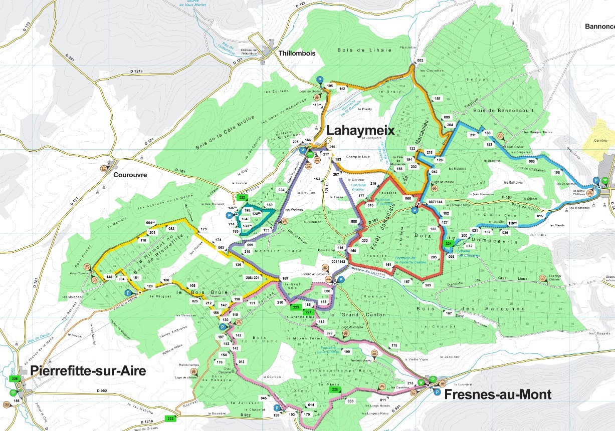 Au coeur de la Meuse, en Lorraine, 6 villages forestiers, 5000ha de forêts vallonnées, plus de 45km de sentiers pédestres, 7 circuits balisés et plus de 100 oeuvres d'art contemporain.