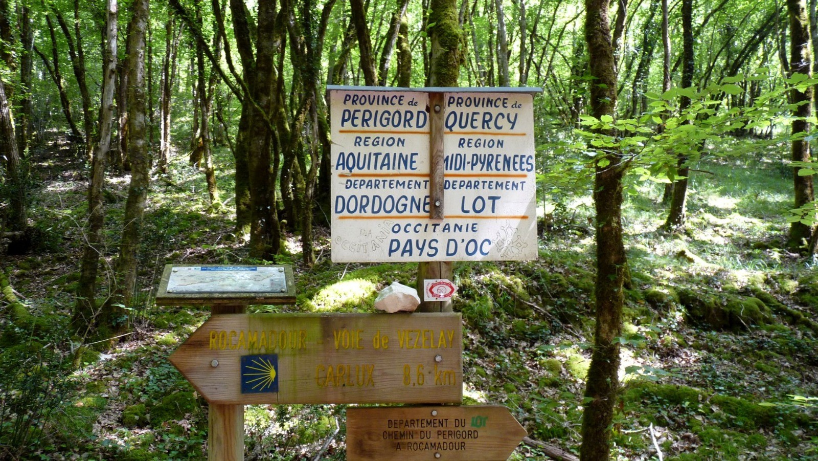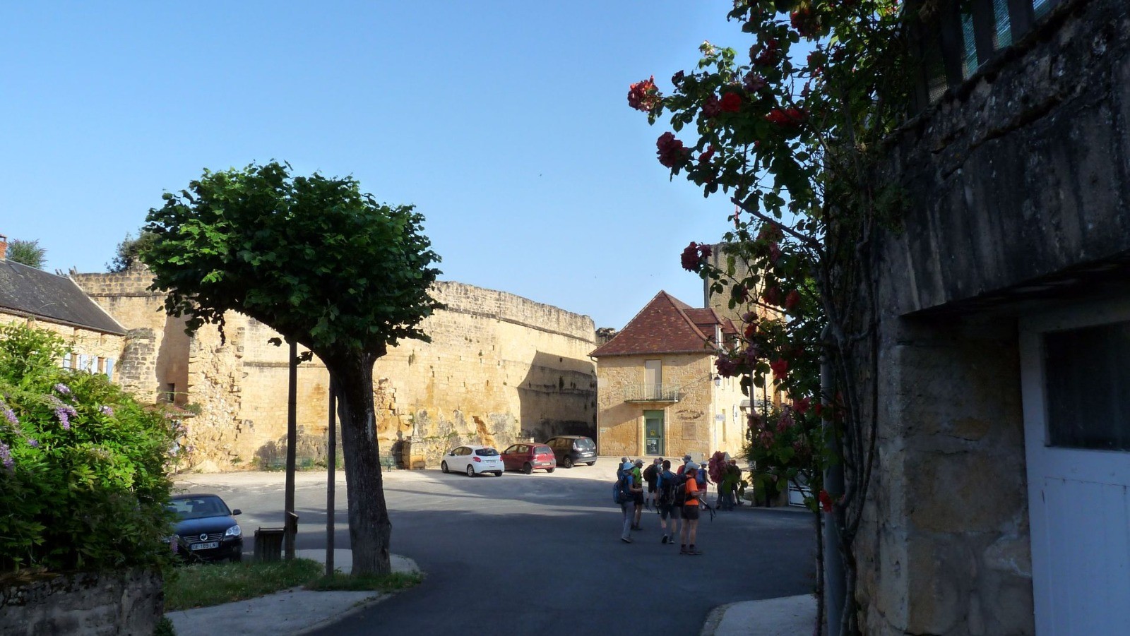 Nous quittons Rouffilac et les bords de la Dordogne en direction de Carlux de son château du X eme et du GR6, encore une traversée d?un beau village. Un petit ravitaillement rapide et nous voici à La Chapelle avant de traverser la Borgne petit affluent de notre Dordogne cheminement en sous bois, sous soleil, et sous chaleur. Après Millac toujours sur le GR6 nous quittons le département de la Dordogne, la région aquitaine et le Périgord pour entrer dans le département du Lot, la région Midi-Pyrénées et le Quercy. Encore un gros effort pour monter en haut de Souillac par les rues surchauffées et arriver épuisés à notre étape du jour : l?Hôtel Bellevue pas encore ouvert à notre arrivée. Vu l?état de fatigue de la troupe nous décidons de raccourcir l?étape du lendemain, et pour ce faire d?aller en taxi chercher les voitures à Rocamadour pour pouvoir demain se rendre au milieu de l?étape en voiture, un savant jeu d?aller retour de véhicule est élaboré pour le lendemain. Ceci étant fait nous pouvons enfin nous consacrer à l?apéro et à la piscine.