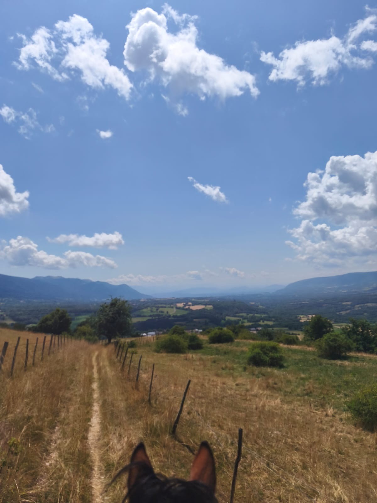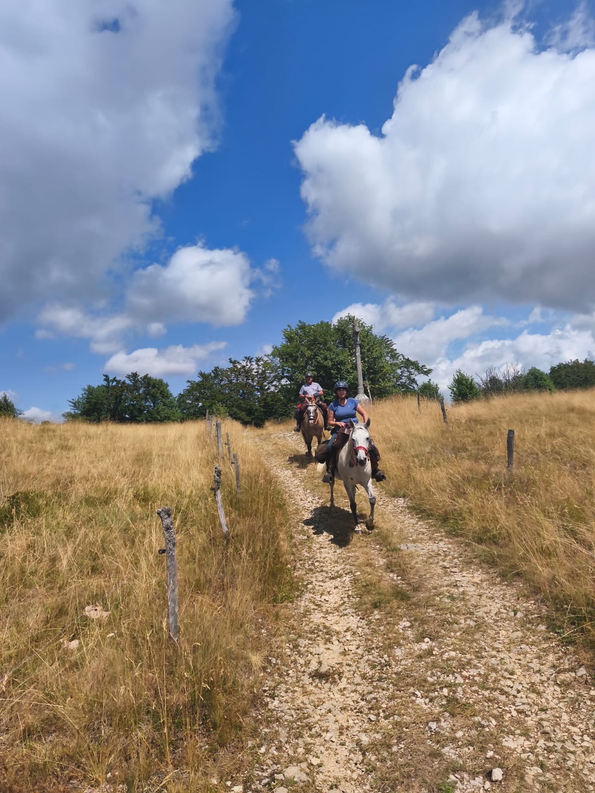Les chevaux devant dans un parc, très fonctionnel avec sellerie attenante et nous logés dans les dortoirs.