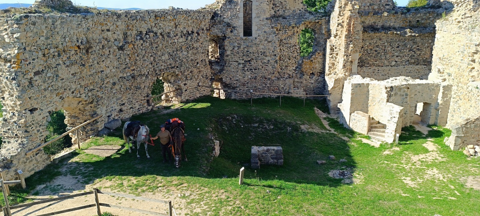 Au départ du gîte d'étape de la Gilbernie. Nous logés dans une chambre dans une grande structure, bon repas tout préparés à se servir en gestion libre. Les chevaux dans un immense parc, seul hic la mare pour l'eau n'est pas bien accessible et très vaseux, nous avions pris l'option de mettre un seau.