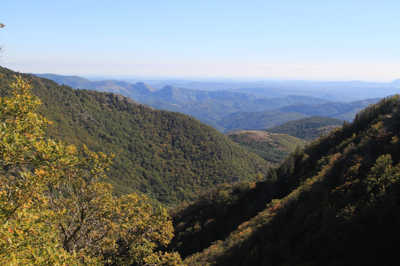 Départ de "Cap de Côte" à 1189m. (N 44° 02' 59'', E 3° 36' 30''). Descendre quelques mètres sous le parking à coté du gîte. Laisser la PR (chemin le plus à Gauche, direction les cascades d'Orgon pour prendre le sentier juste au dessus à droite , direction "le Troussat", 1.5km). Un beau sentier (marques jaunes) à flanc de montagne, avec des belles vues vers le sud et l'ouest , monte lentement à flanc de montagne, franchit un petit ressaut, puis par un cheminement en palier, retrouve une piste forestière avant de revenir vers la route D329, au niveau d'un parking, 2.7km environ après le départ. On traverse la route pour prendre le sentier vers la tombe d'André Chamson, puis le sentier des mouflons vers le pic de Barette. En redescendant, on croise la route et on l'emprunte sur 700m environ vers l'ouest en direction du Col de la Luzette avant de prendre à gauche la draille qui descend , coupe un piste, traverse un petit ruisseau, puis remonte légèrement et nous ramène au parking (1290m). (Pique nique au soleil sous le départ du sentier des mouflons, avec une vue magnifique vers l'Est). Pour repartir, on emprunte en sens inverse la piste prise au début de la rando sur 700 à 800m, avant de descendre à droite sur un sentier vers le ruisseau (direction Cascades d'Orgon).On traverse ce ruisseau du Valat de l'Abreuvoir juste avant un abri en pierre , avant de prendre un beau sentier sur l'autre versant qui remonte progressivement jusqu'à la piste du cimetière, que l'on prend à gauche vers les Cascades d'Orgon .On les atteint en prenant au bout de 1.2km le sentier à gauche, juste avant le ruisseau. Le GR pour le retour grimpe à gauche environ 20m avant la passerelle, où l'on aura fait un petit aller retour pour voir la cascade et le paysage. Après une petite montée et un palier, le sentier va plonger à droite et perdre près de 200 m de dénivelé par des lacets serrés. Sentier du PR bien tracé, mais raide, descendre docement sans couper la trace. En bas des lacets, on trouve une section en palier Un peu plus loin, on traverse à gué un beau ruisseau sur des blocs de rocher avant de remonter très progressivement sur un sentier avec de beaux murs de soutènement en pierres sèches vers Cap de Côte.